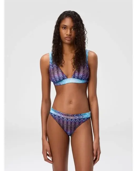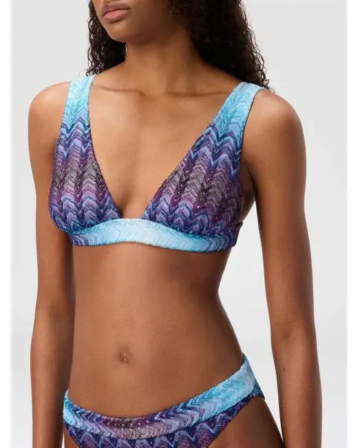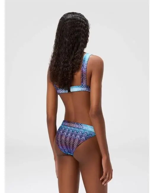 This bralette bikini features a supportive elastic that combines comfort and style. Made from Raschel with the iconic zigzag pattern, enriched with viscose and lamé, it’s an explosion of elegance and practicality for glamorous beach moments.
