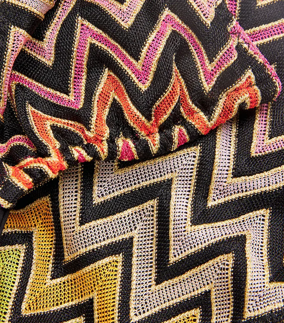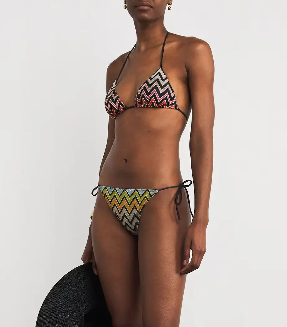 Missoni presents a more defined take on its signature zigzag pattern with this bikini. Rather than blending it into an abstract composition inspired by sunsets or the sea, the motif is rendered in crisp, deliberate lines, set against a black base that makes every tone, stitch, and contour stand out.