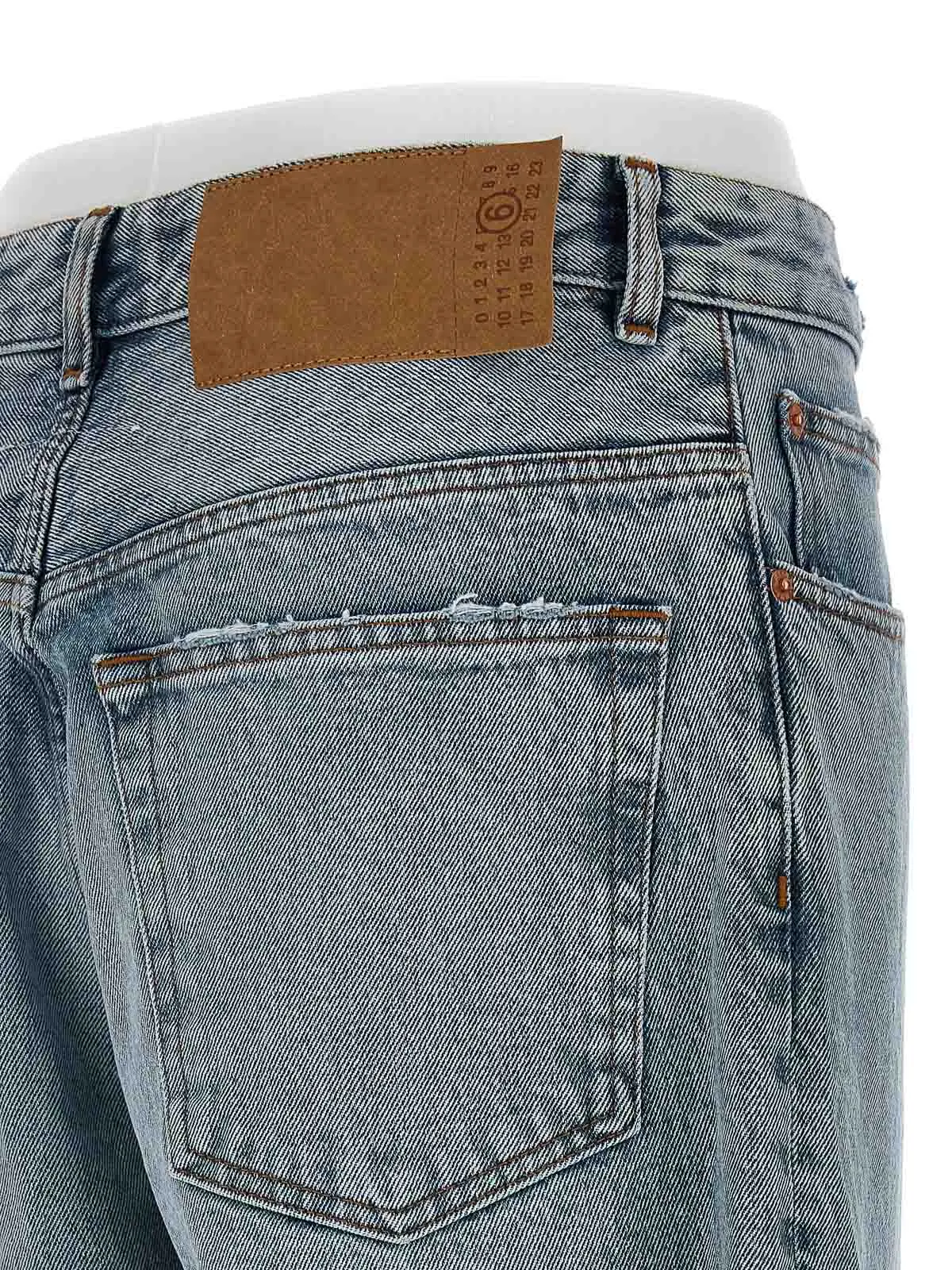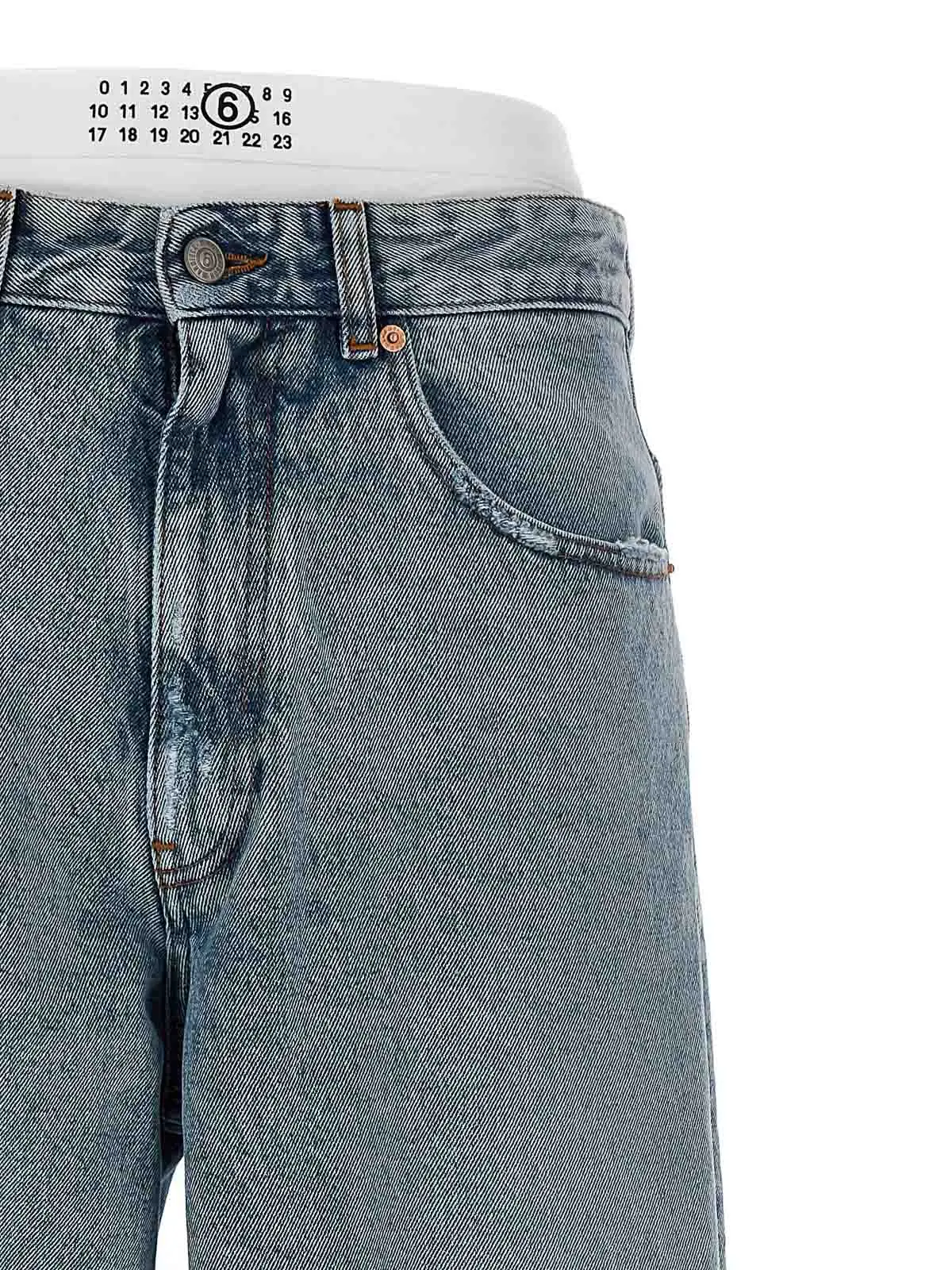 Cotton denim jeans with used-effect boxer that comes out of the trousers zip and button elastic waistband and adjustable drawstring five pockets wide leg back windlass
