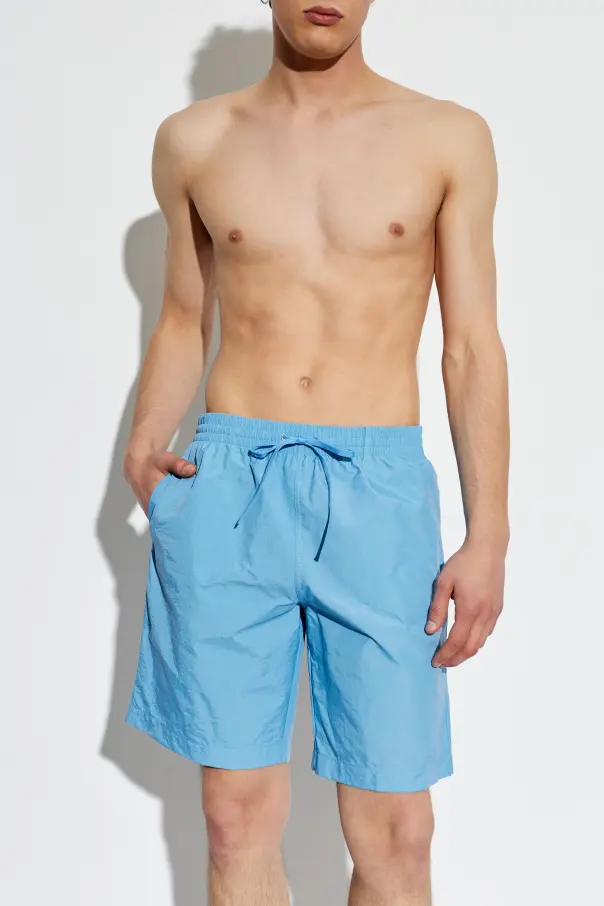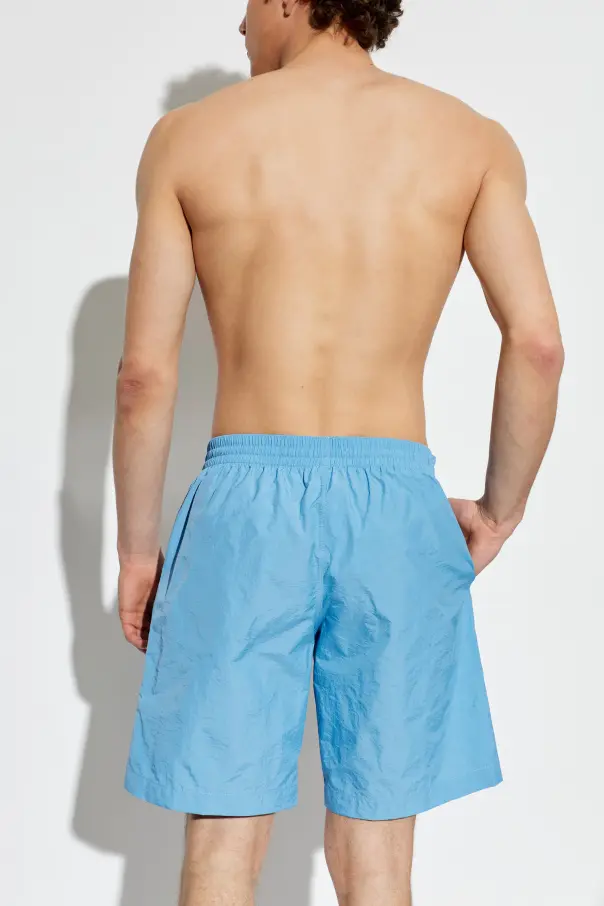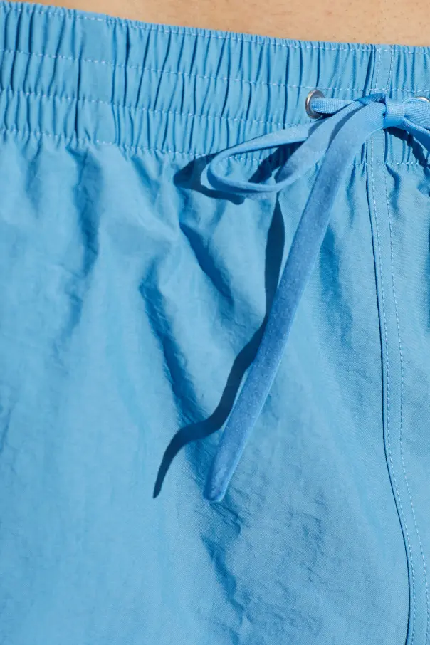 The MM6 Maison Margiela swim shorts are synonymous with refined elegance and comfort in summer styling. Styled in a refined blue , they boast a classic cut – falling subtly above the knee, with straight, slightly loose legs that allow for complete freedom of movement. Their completely smooth surface, devoid of any embellishments, emphasizes the minimalist nature of the product.