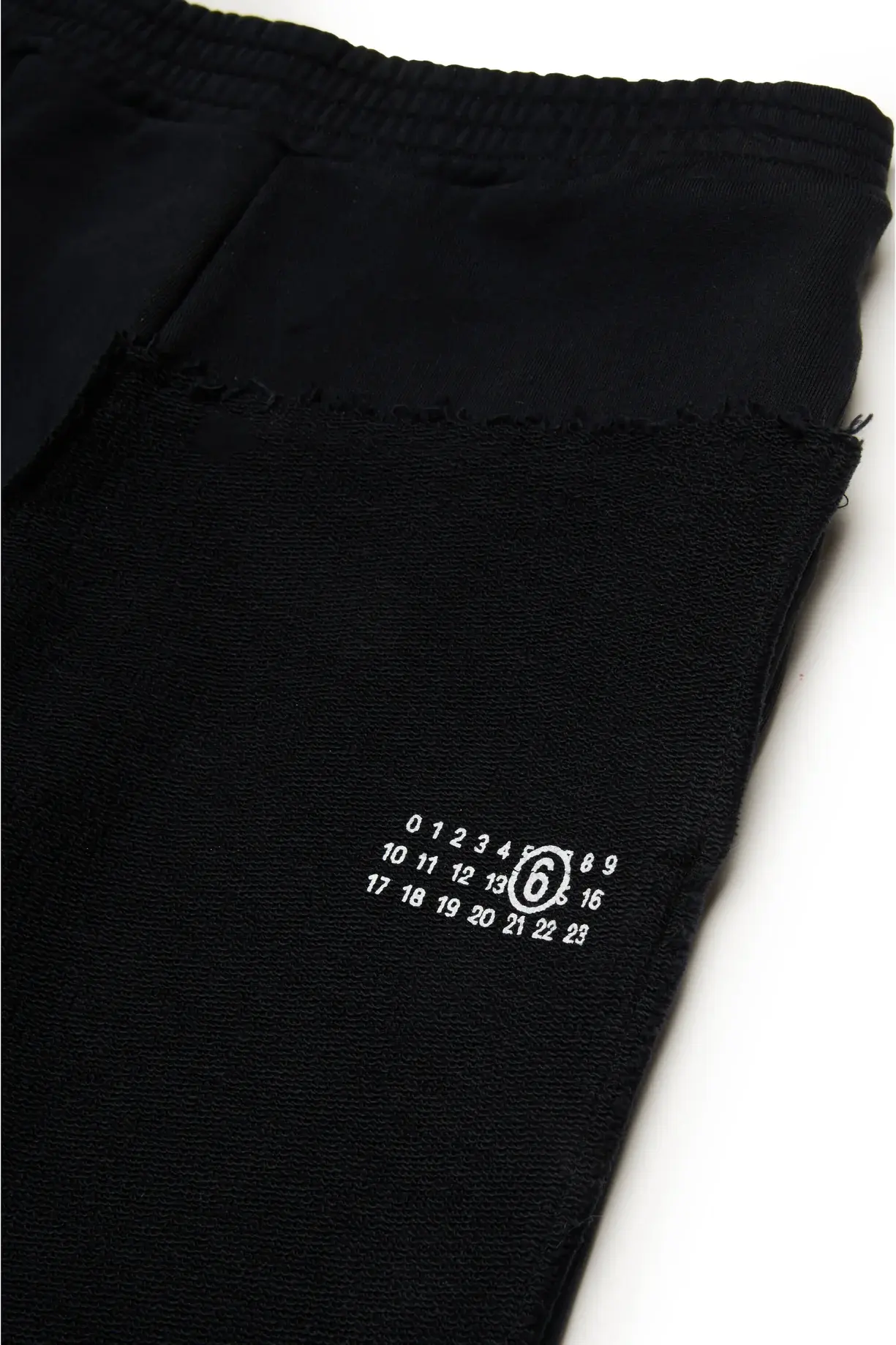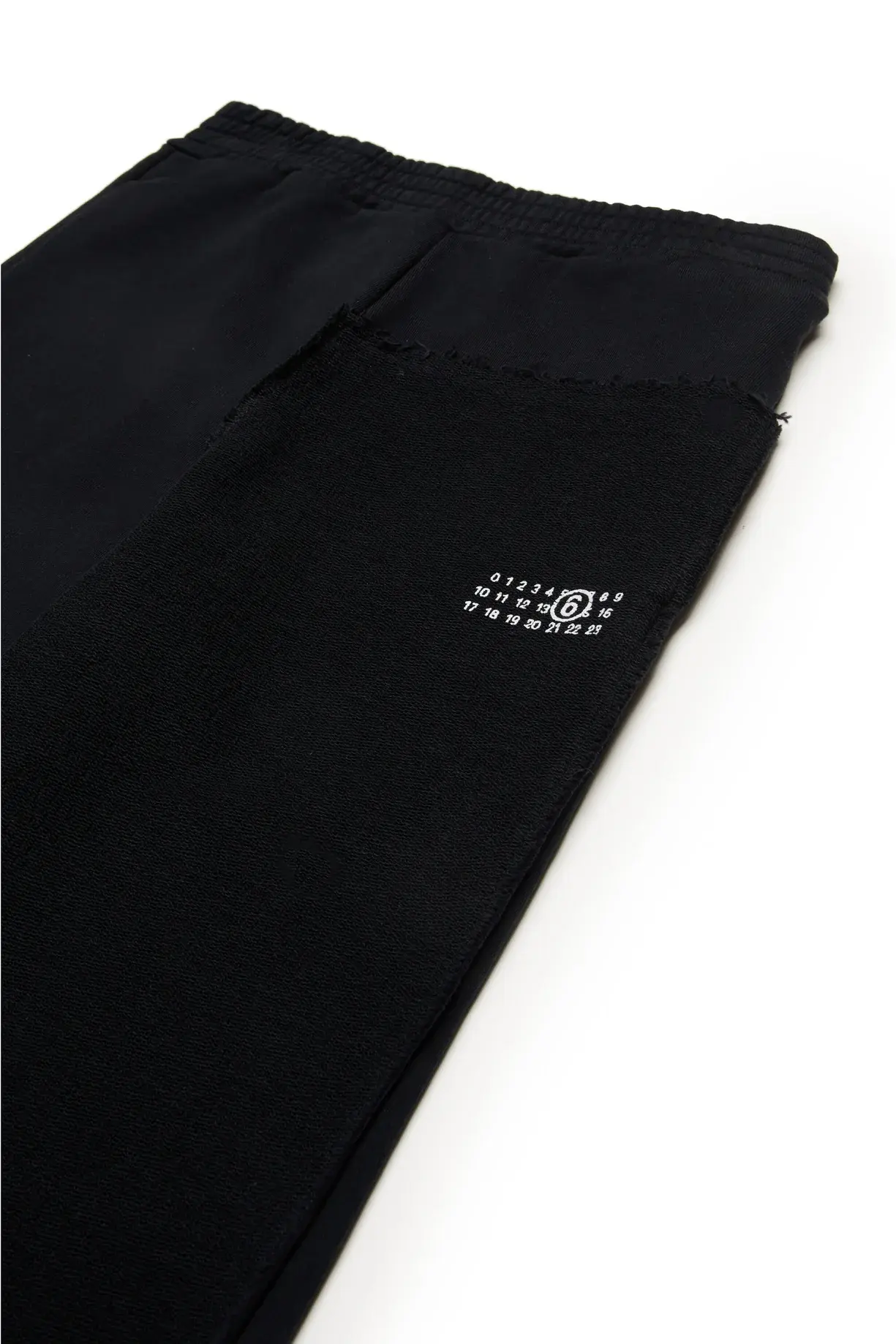 Fleece pants. Elastic waistband. Re-cut construction simulating the assembly of two previously unstructured garments. Numeric logo in contrasting color on the front. Front welt pockets. Iconic seam at back. Made of 100% cotton.