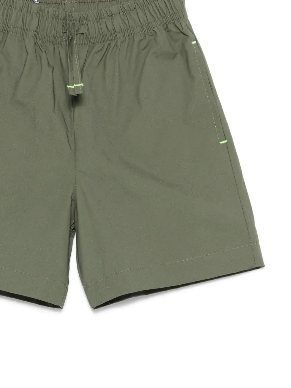 Made of 100% cotton, they are green and feature an elastic waistband and drawstring.