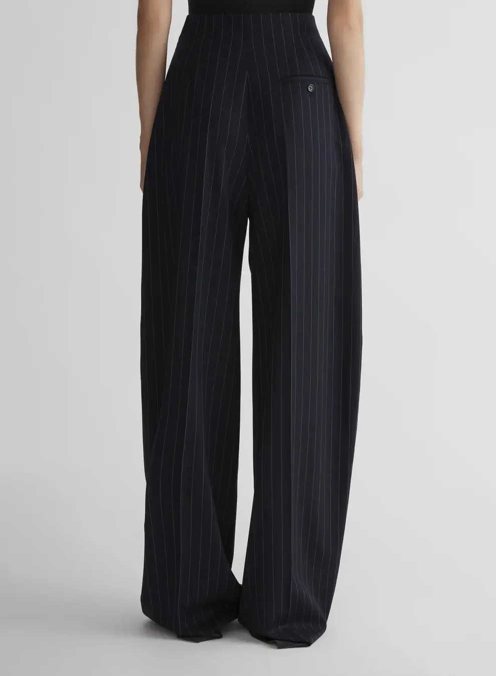 Wide tailored pants in light virgin wool Pleated high waist Hidden hook and zip closure Side-seam pockets Back welt pockets Fully lined