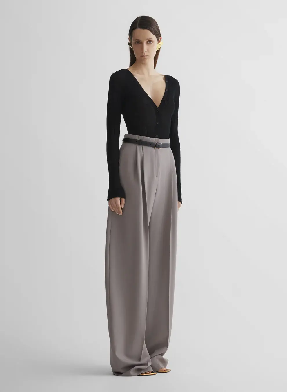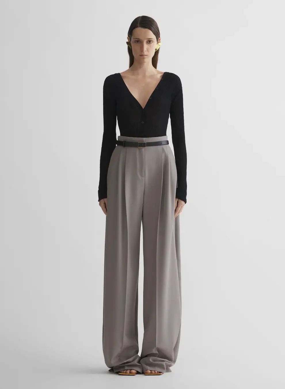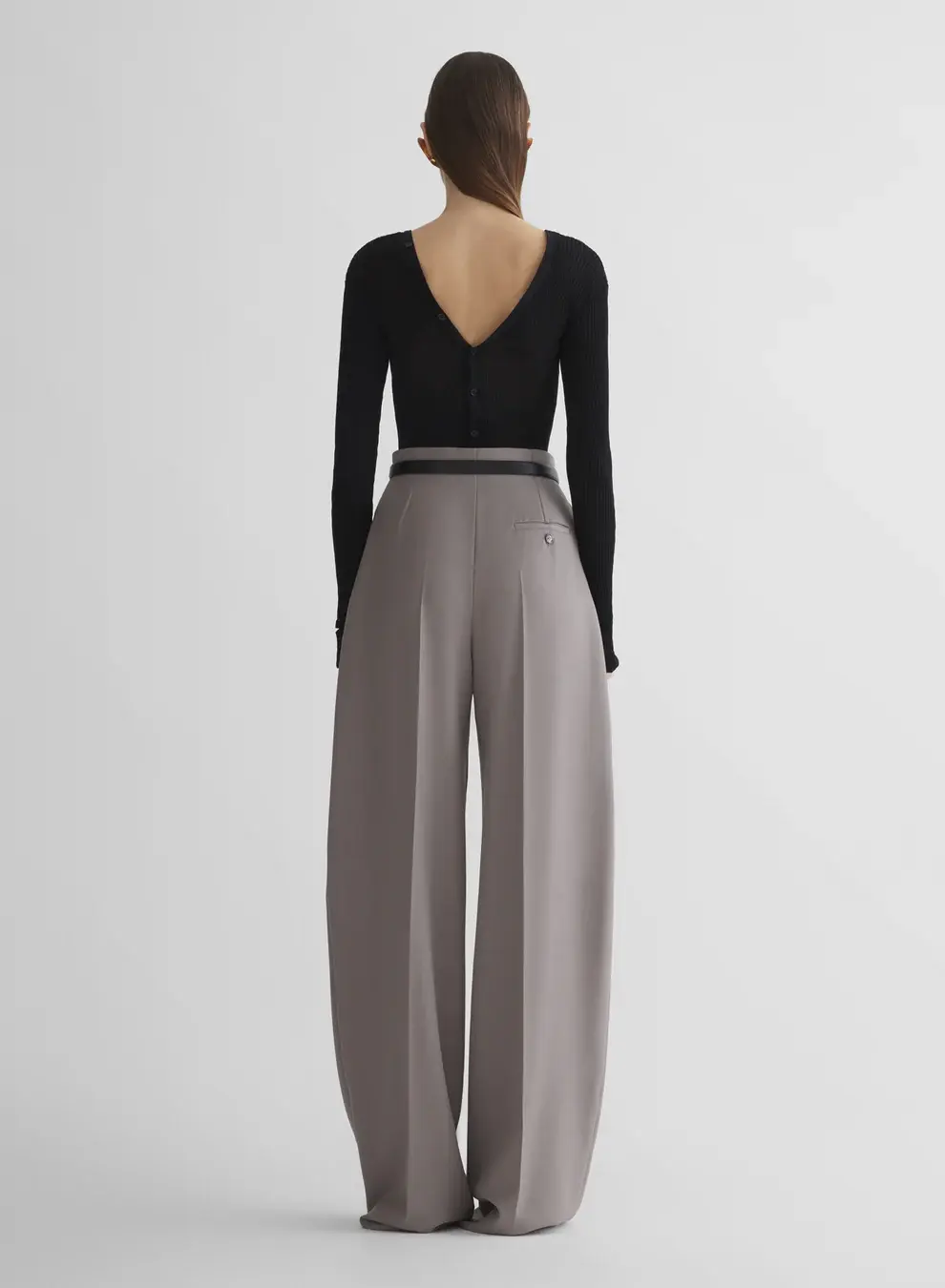 Wide tailored pants in light virgin wool Pleated high waist Hidden hook and zip closure Side-seam pockets Back welt pockets Fully lined Model is 177 cm / 5'10" and is wearing a size 36