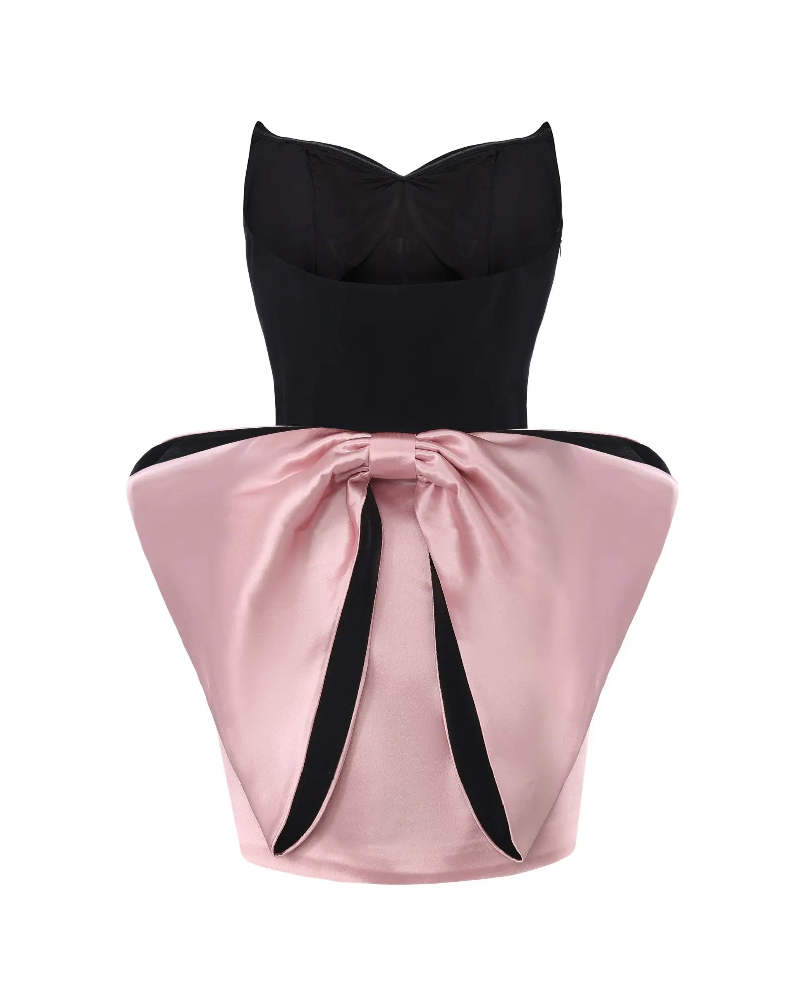 The Amelia Bow Dress is a velvet and satin bow dress that fuses retro elegance with modern sophistication. The strapless bandeau dress features a sculpting velvet bodice with vintage cat’s-eye cups and fishbone support, while the satin skirt drapes fluidly to flatter every curve. Finished with a dramatic oversized bow at the back, this black velvet dress embodies playful romance and refined allure. A true luxury mini dress for birthdays, dates, or any special evening.