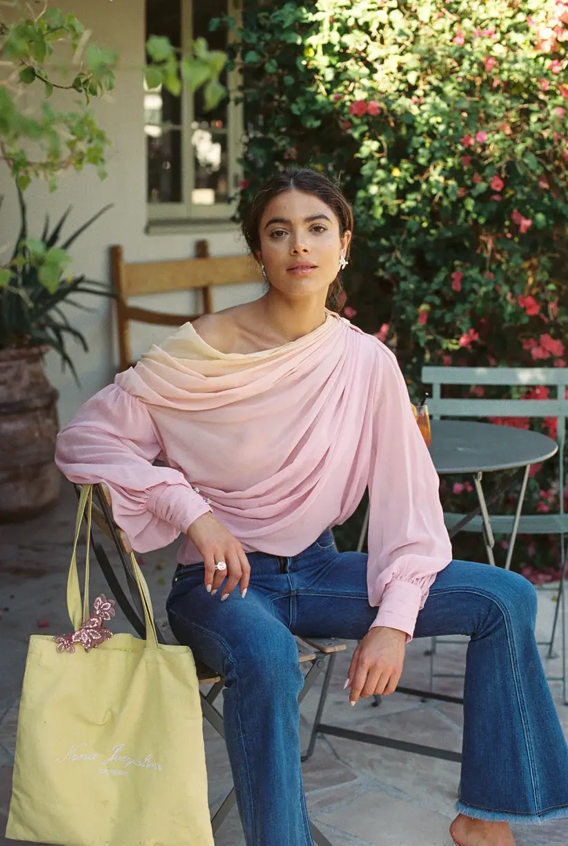 Indulge in effortless romance with this Selene Top, a dreamy blend of elegance and modern sophistication. Crafted from ethereal chiffon, its yellow-to-pink gradient flows like a sunset, draping beautifully with every movement. The off-shoulder silhouette create a feminine allure, while the exquisite bow detail, adorned with a zircon double-row diamond chain, adds a shimmering, luxurious finish. Whether paired with a flowing skirt or sleek trousers, the Selene Top is your perfect statement piece for every romantic occasion.