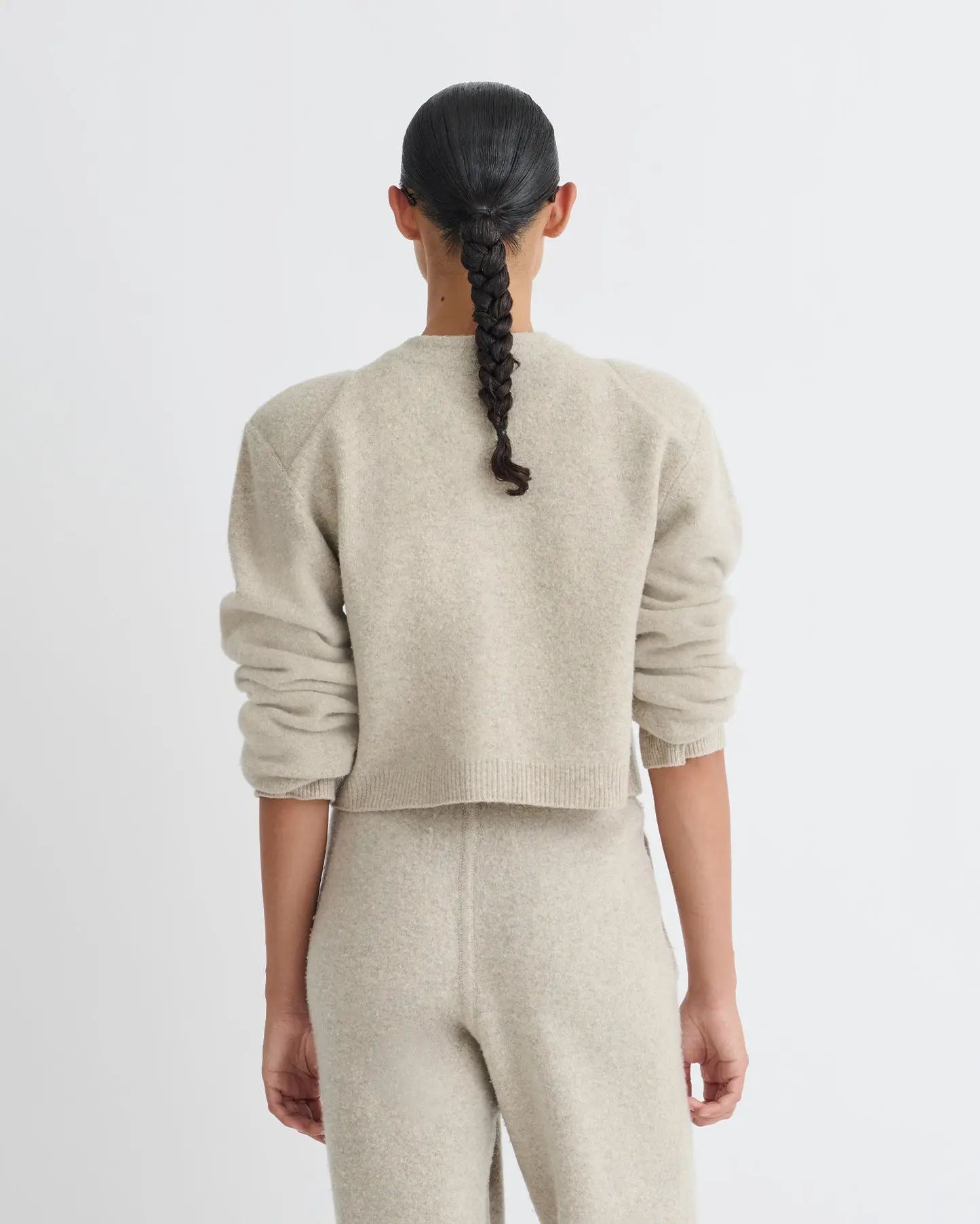 Our Raddix Cardigan is crafted from overwashed merino for a soft yet resilient feel. This cropped, close-fitting cardigan is a modern knitwear essential. In an oatmeal tone, it bridges comfort and elegance to create a seasonless wardrobe staple.