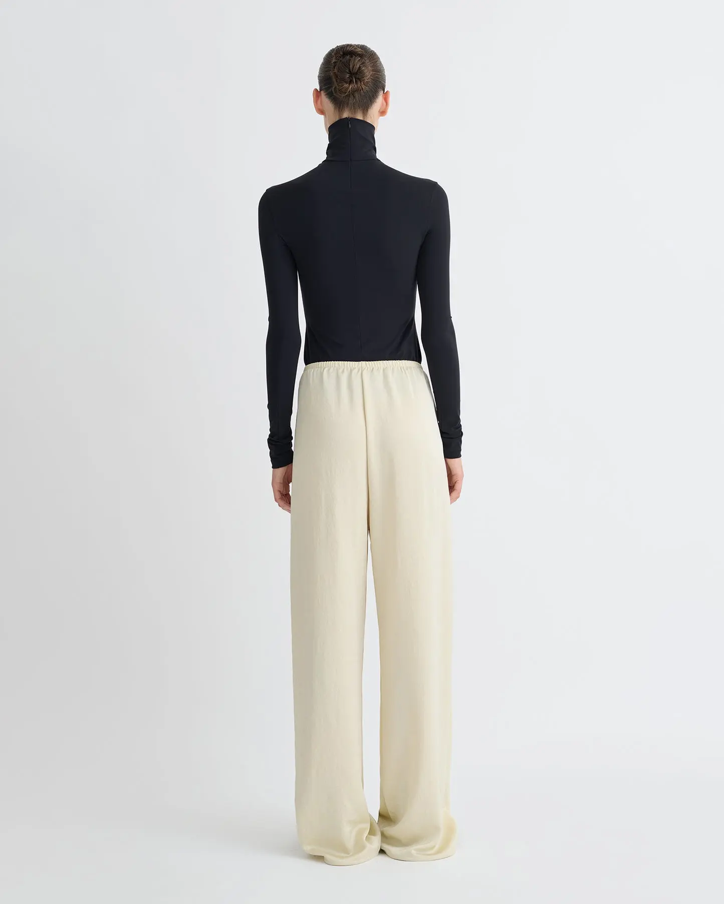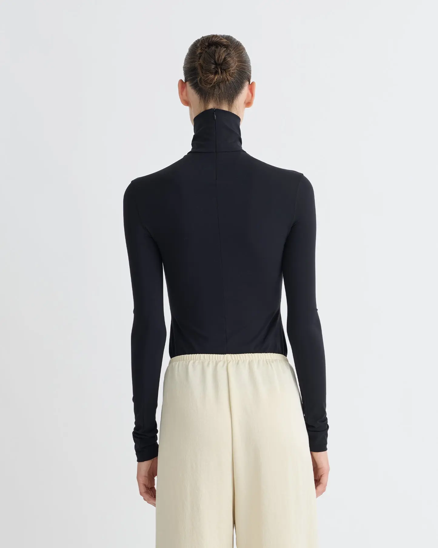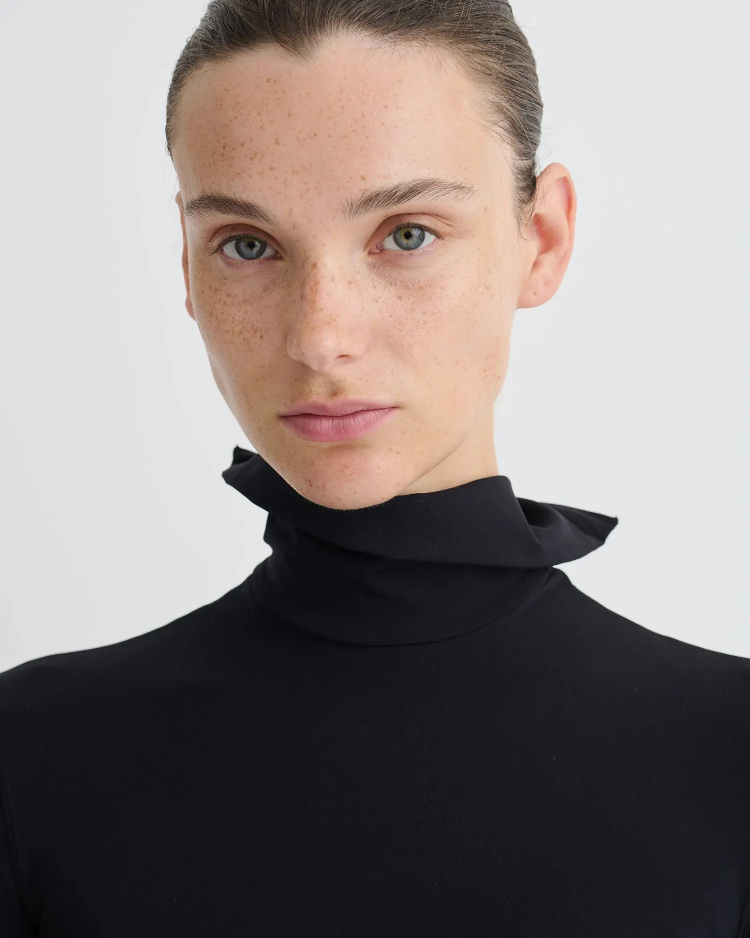 The Anona Top is an exercise in modern layering. Crafted from stretch jersey, this close-fitting long-sleeved top features a low V neckline over a built-in turtleneck underlayer. In timeless black tone, it channels the spirit of strength through subtle detail and sleek precision.