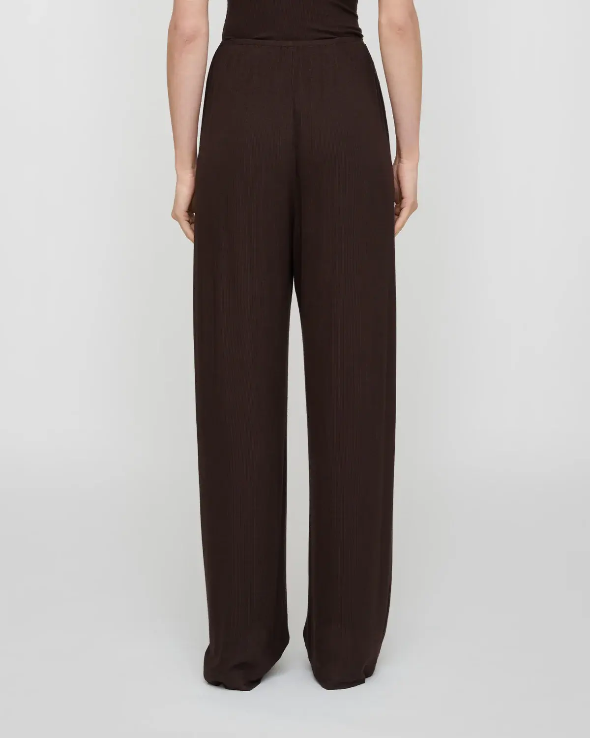Cut to a clean silhouette, made in Fluid rib, the ZOELA Pants in dark brown aligns with the season’s understated elegance and architectural clarity. Featuring an elasticated waistband for refined comfort and a barrel-leg silhouette for sculptural volume, it elevates everyday dressing with distinctive detail. Finished with regular fit, it moves with ease.