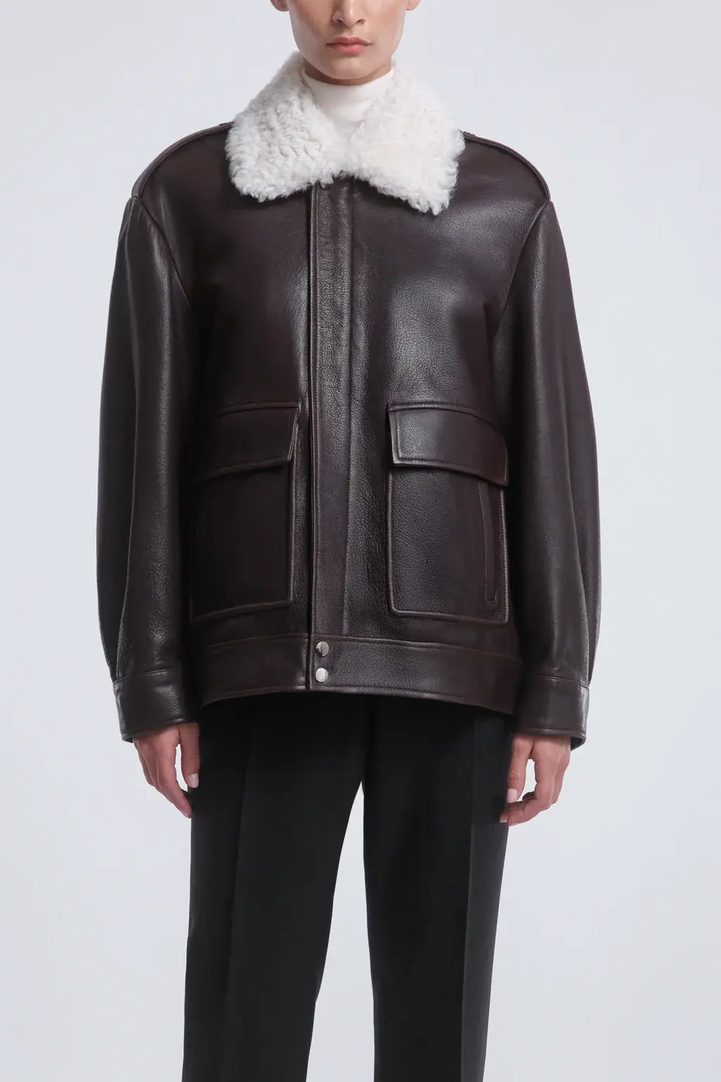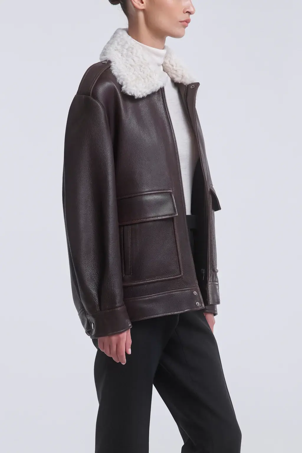 Drey curly shearling collar Laid-back Leather Jacket