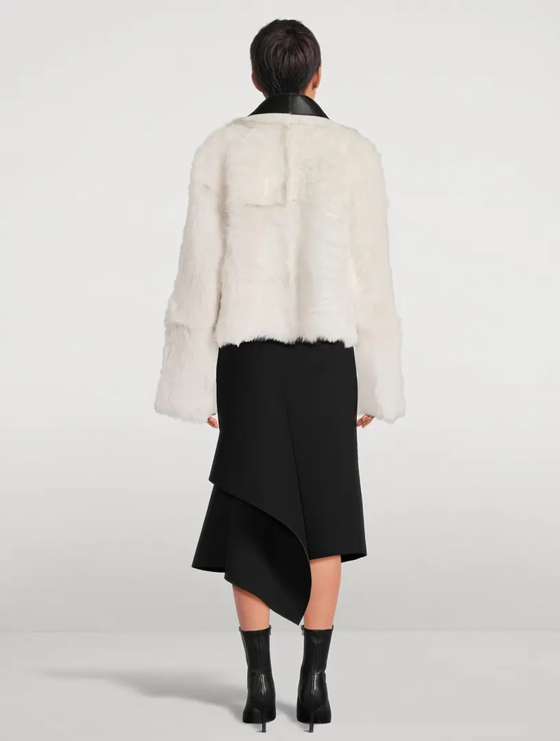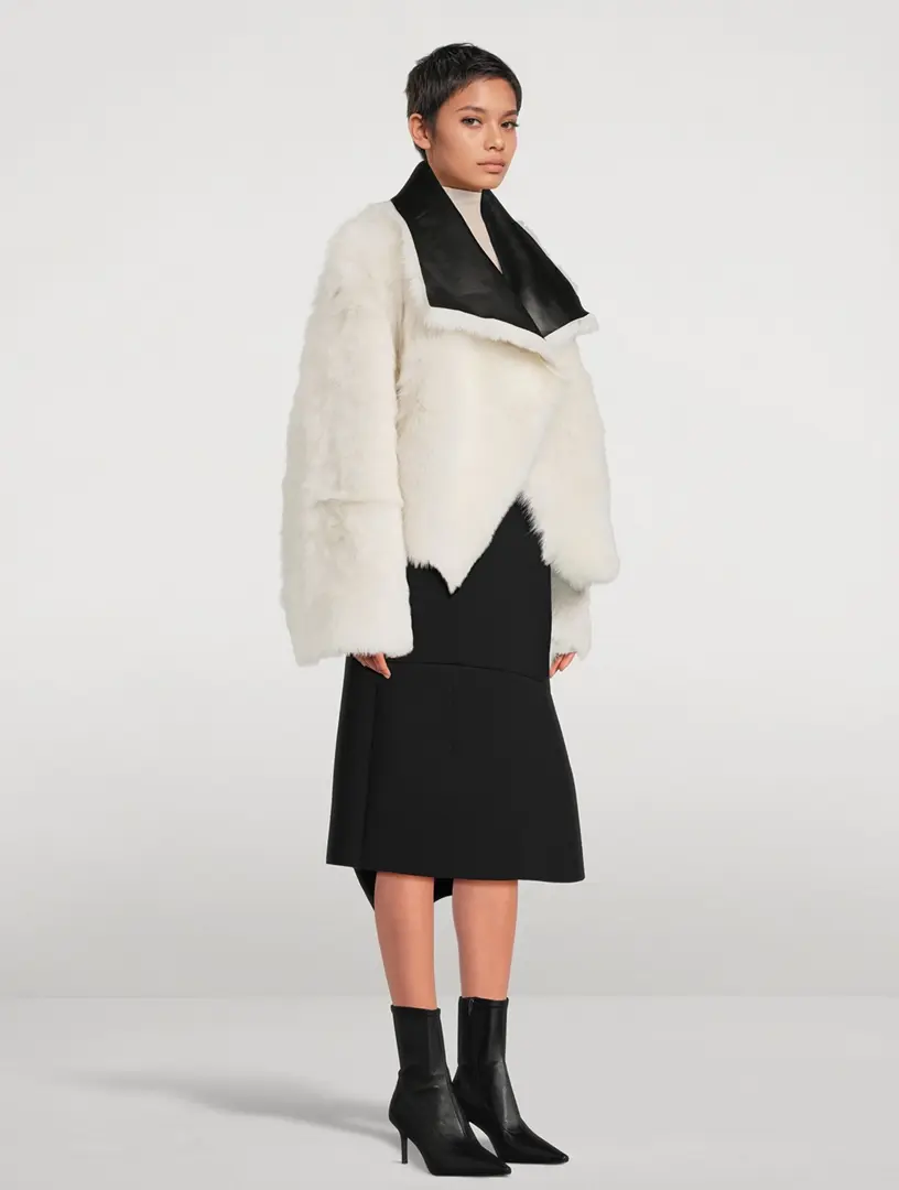 This cropped jacket is crafted from toscana shearling with a reversible design. 100% Leather Foldover collar Long-sleeve Open front Imported