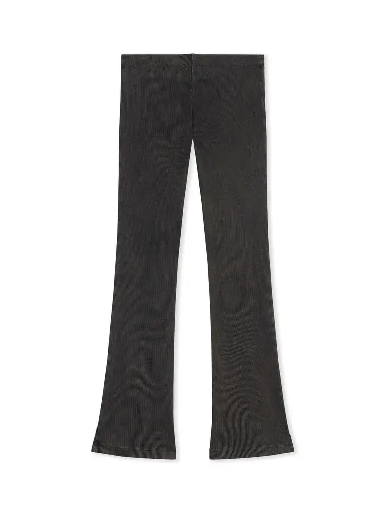 Acid wash ribbed pants with subtle flared hem and signature logo detail.