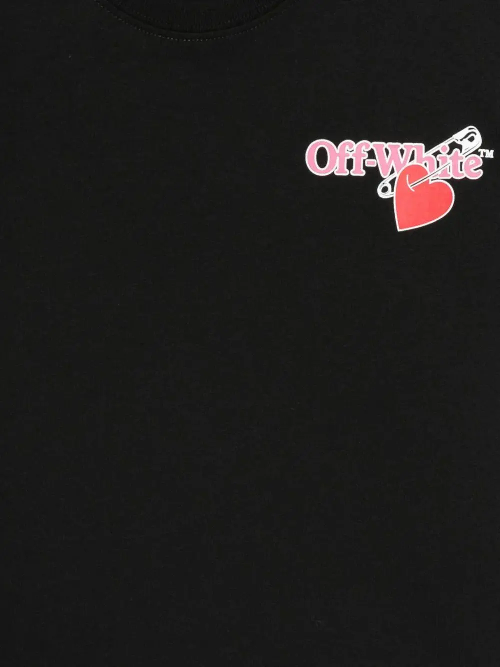 Off-White Kids black T-shirt for girls with printed logo and heart motif