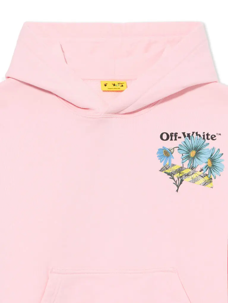 The Daisy Tape Hoodie features floral tape artwork with a bookish logo composition, placing the main graphic on the back and a smaller matching detail on the chest.