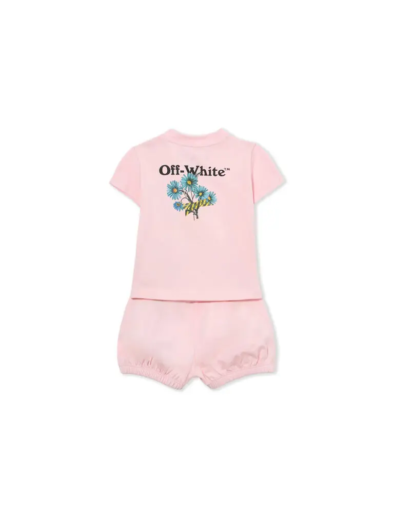 The Daisy Tape Set combines a coordinated top and bottom with repeated tape-style graphics, using daisy motifs and logo elements to define the set’s visual identity.