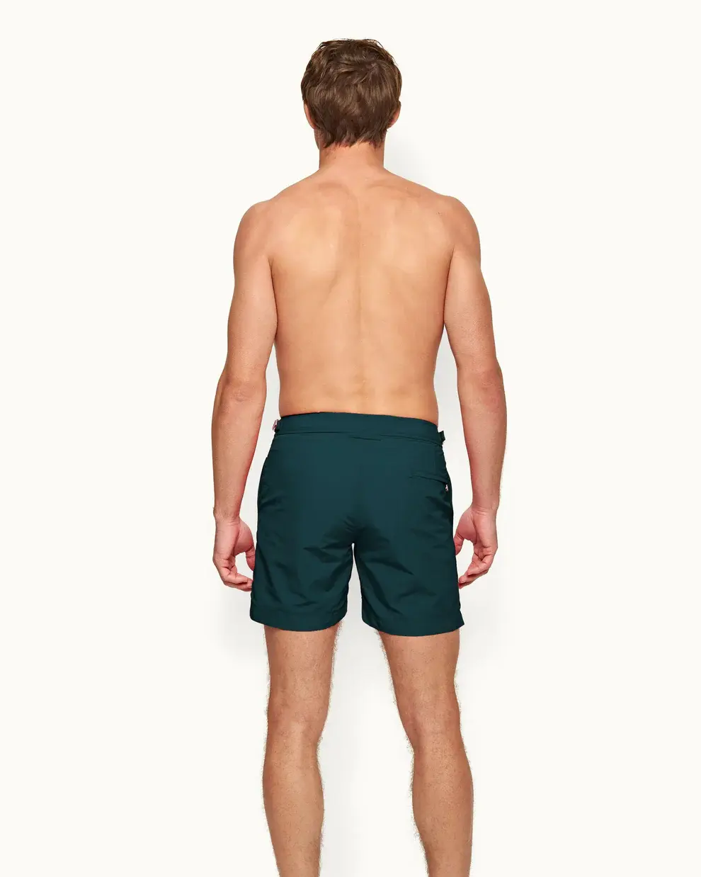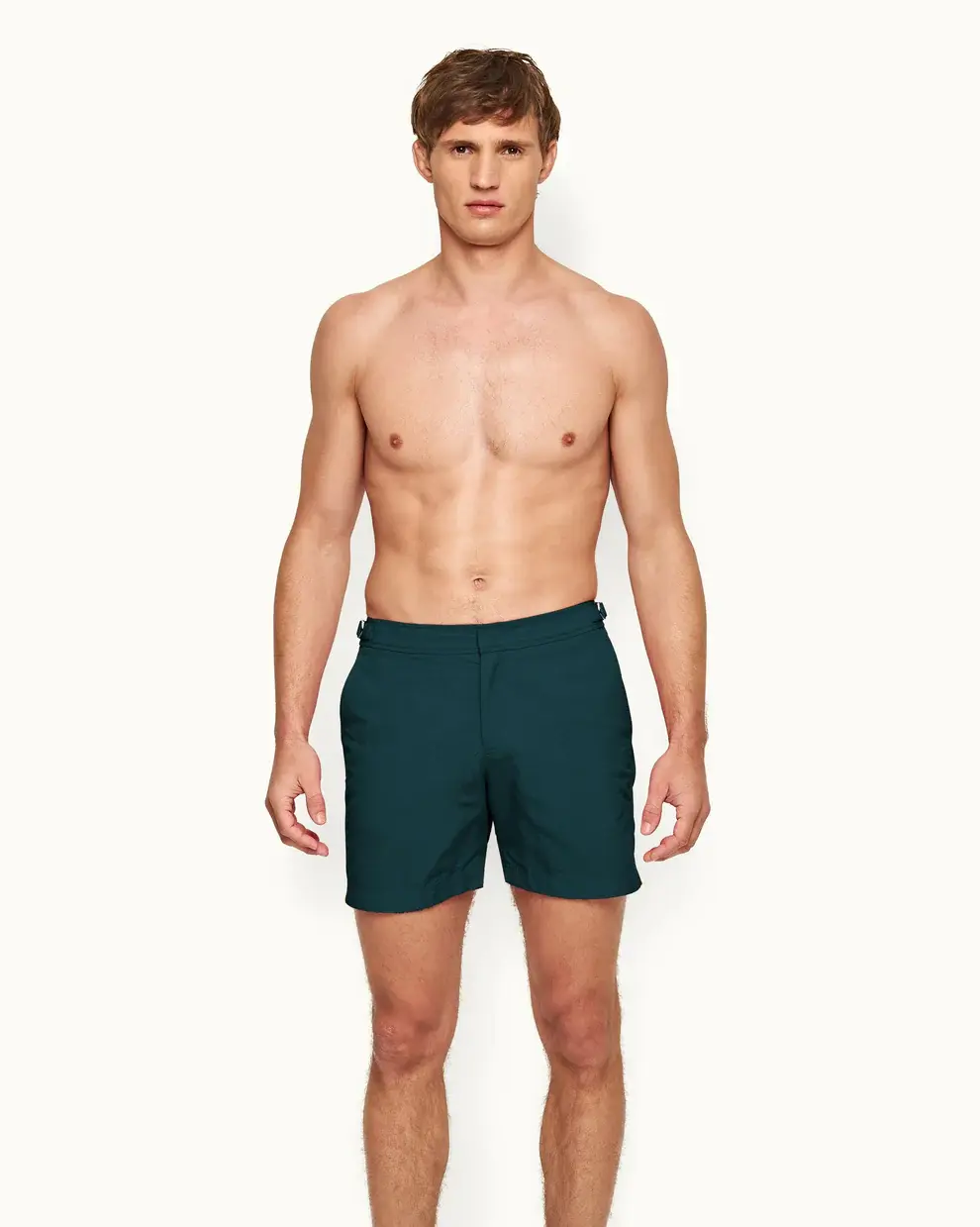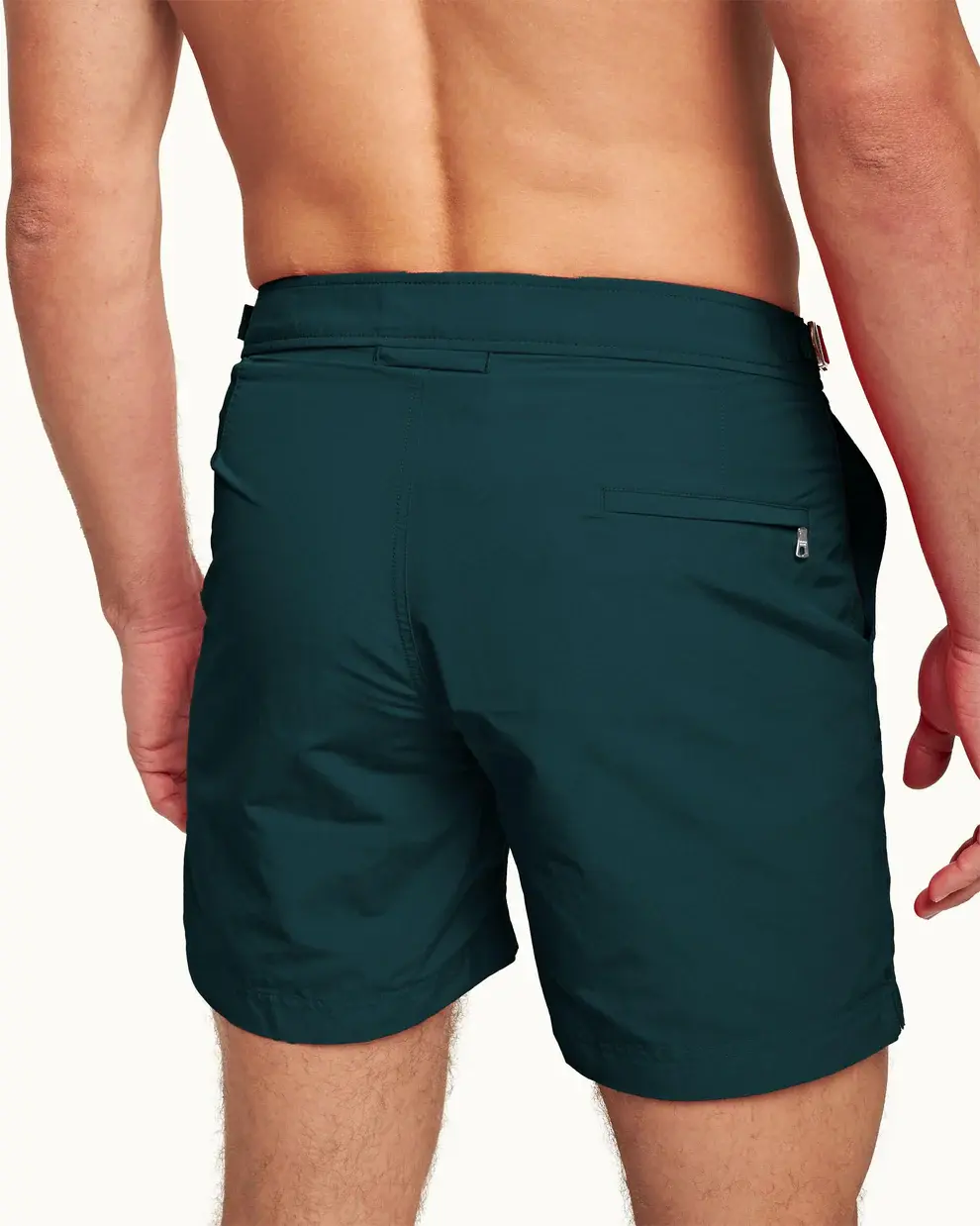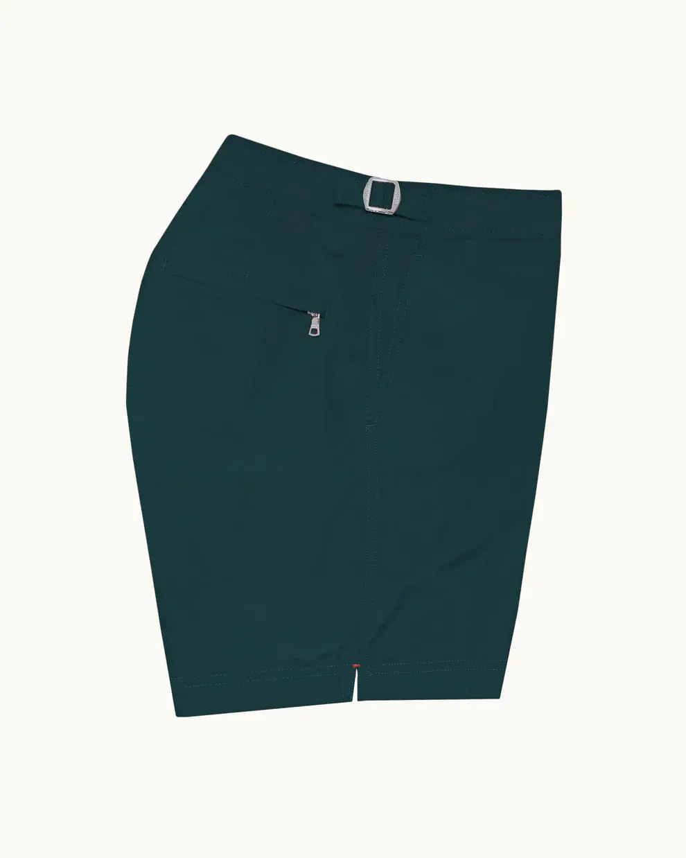 The OB Classic Bulldog in Peli Green is based on the pattern of a traditional man’s suit trouser – it's not a swim short, but a short you can swim in. The mid length swim shorts have a perfect fit and signature side-fasteners. With over sixty elements in each pair, OB Classic swim shorts are made from 100% recycled plastic.
