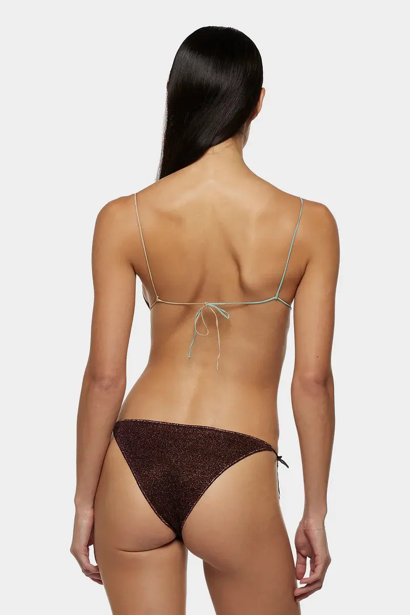 The Lumière O Kini channels Oséree’s playful elegance with its sleek silhouette and signature logo details. The shimmering fabric enhances every curve, while the bold ring accents add a touch of modern sensuality. A statement bikini made to shine from beach to sunset.