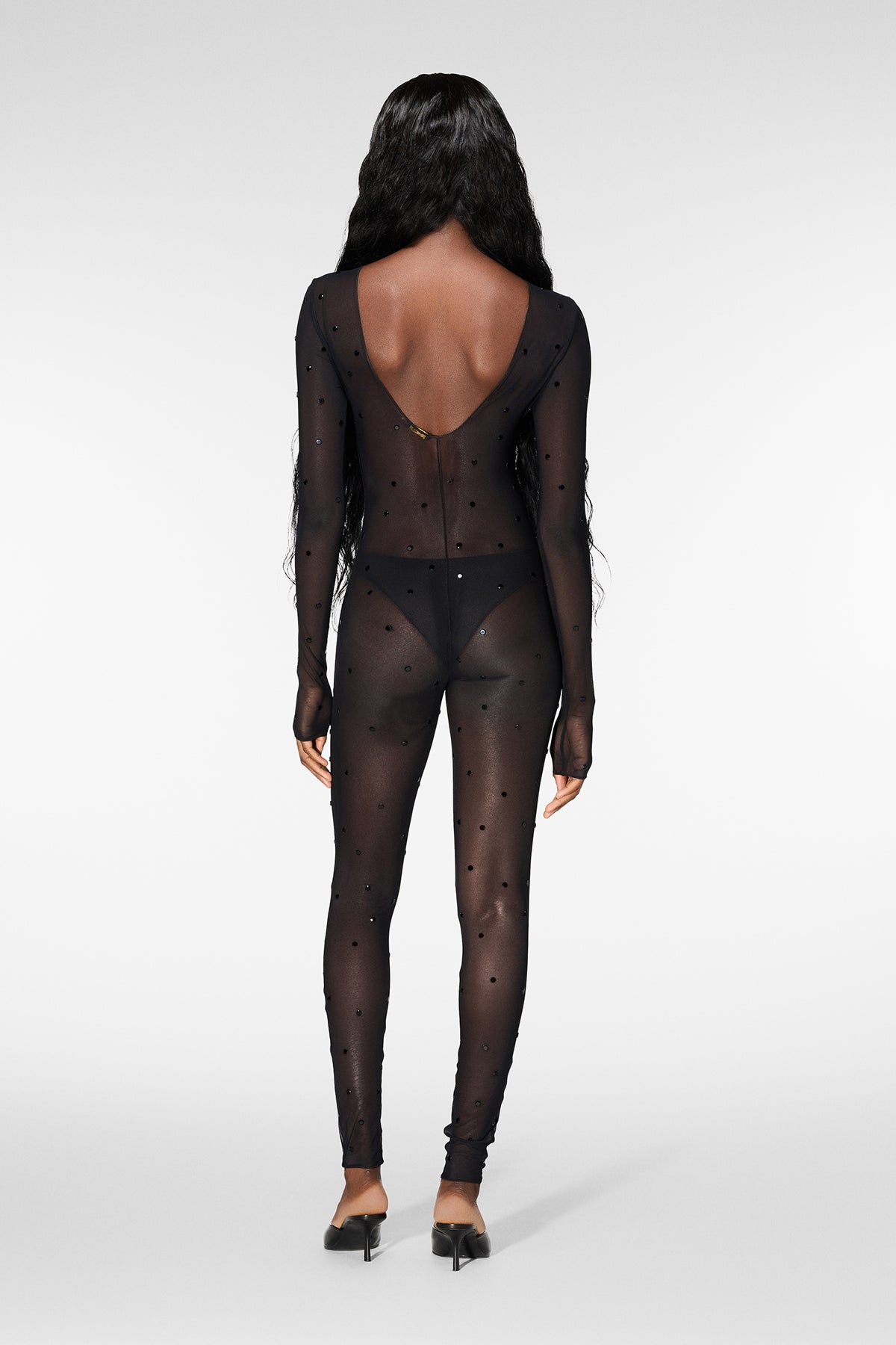 This crystal jumpsuit is a work of art, made with intricately designed mesh adorned with shimmering crystals. Its luxurious design will make you stand out in any crowd, while its comfortable fit ensures you can move and dance with ease. Elevate your style with this unique and sophisticated piece.
