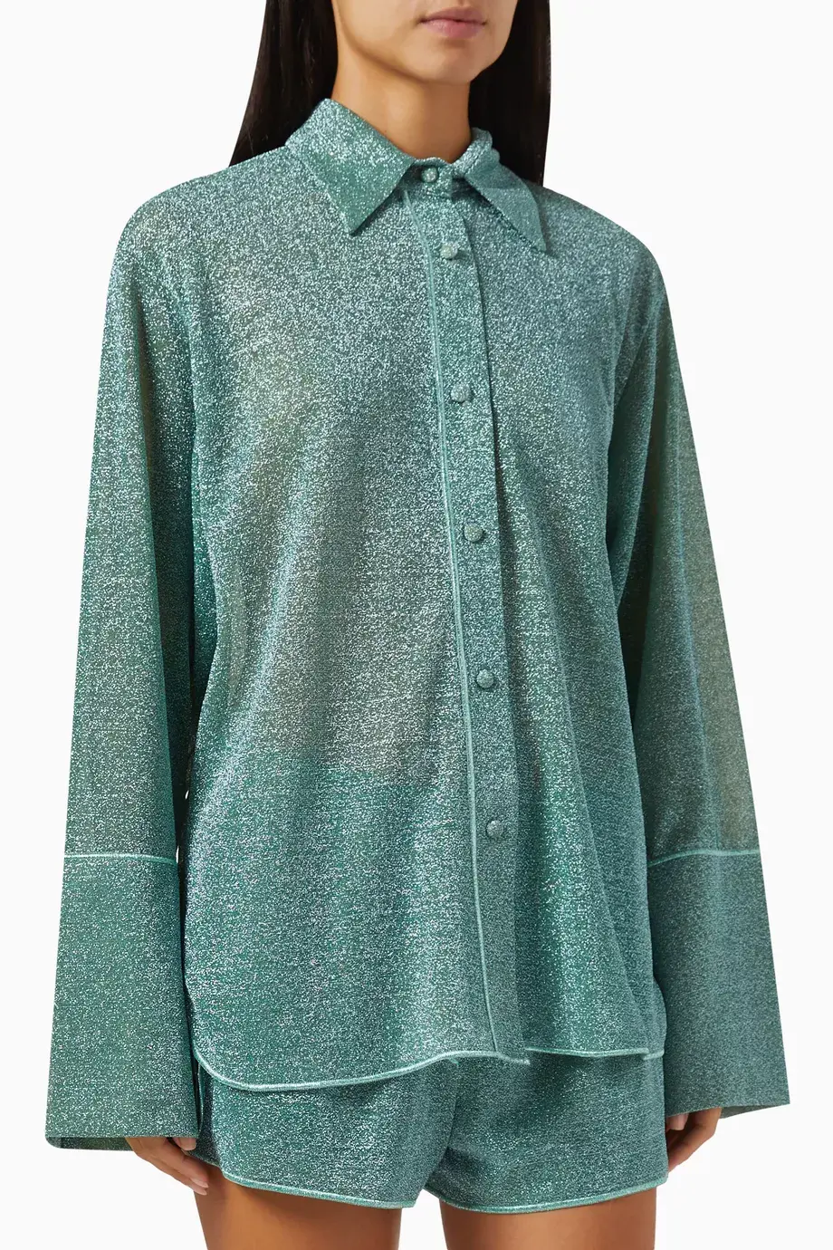 Made from metallic Lurex fabric, the Oséree Lumiere Shirt features a relaxed fit that can be styled buttoned up or worn open as a light outer layer. Subtly flared sleeves add a flattering, feminine touch to the overall silhouette.