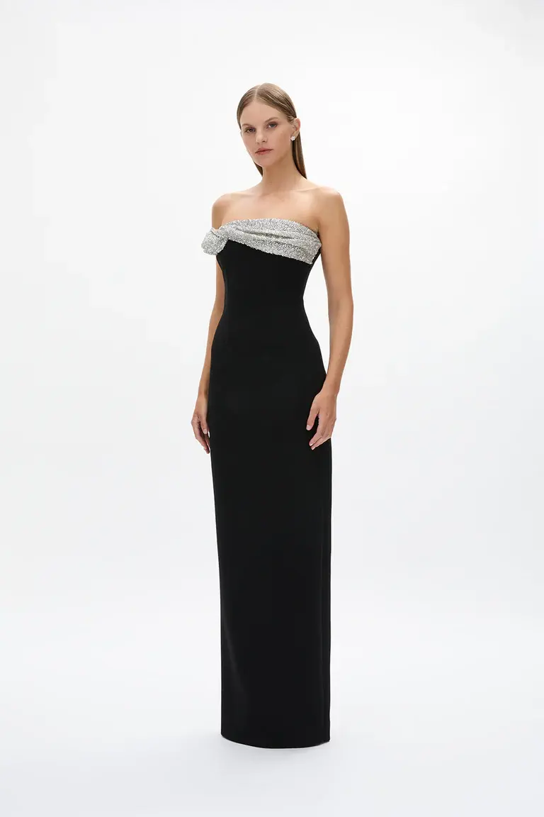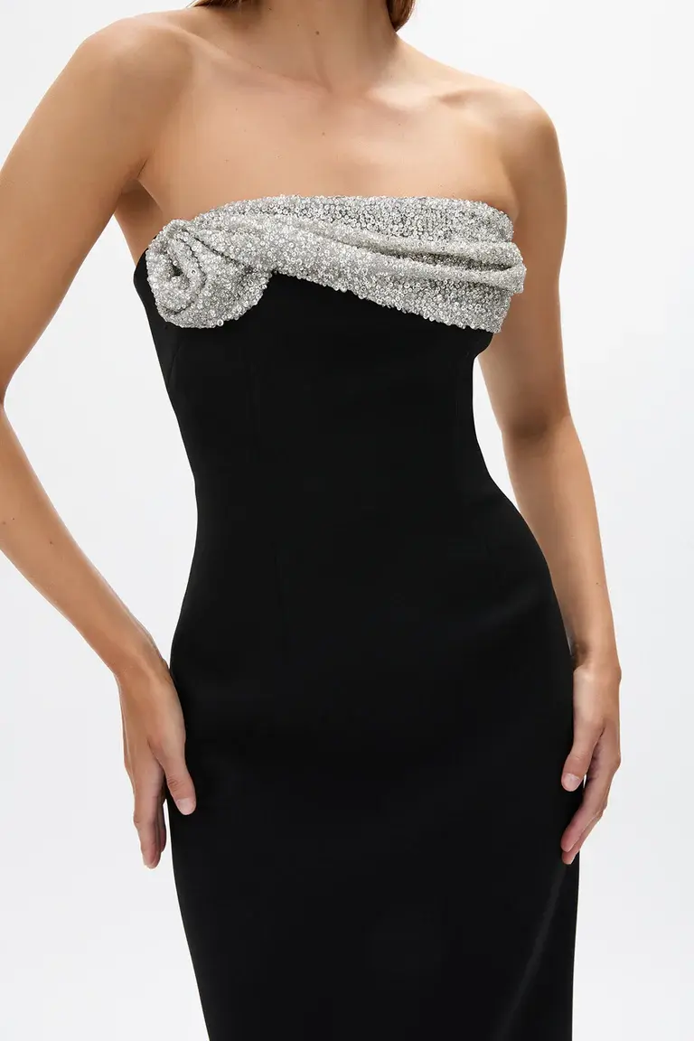 Hand beaded embellished drape at front bodice