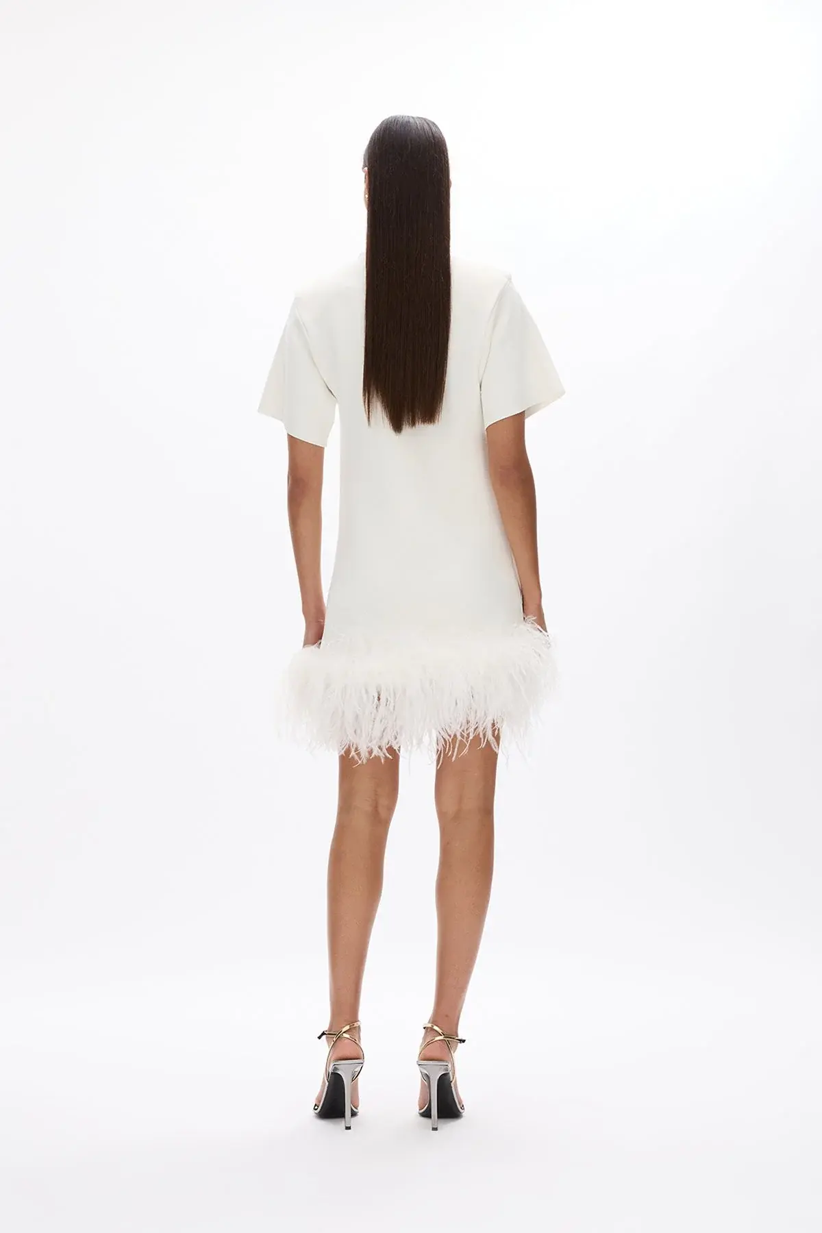 Inspired by the best-selling Linc mini, the Rita Mini is nothing short of a sartorial sensation. Made from midnight-black crepe, it has a modern turtleneck and cascades to an A-line hem. The floaty feathers will enhance movement on the dance floor or at dinner.
