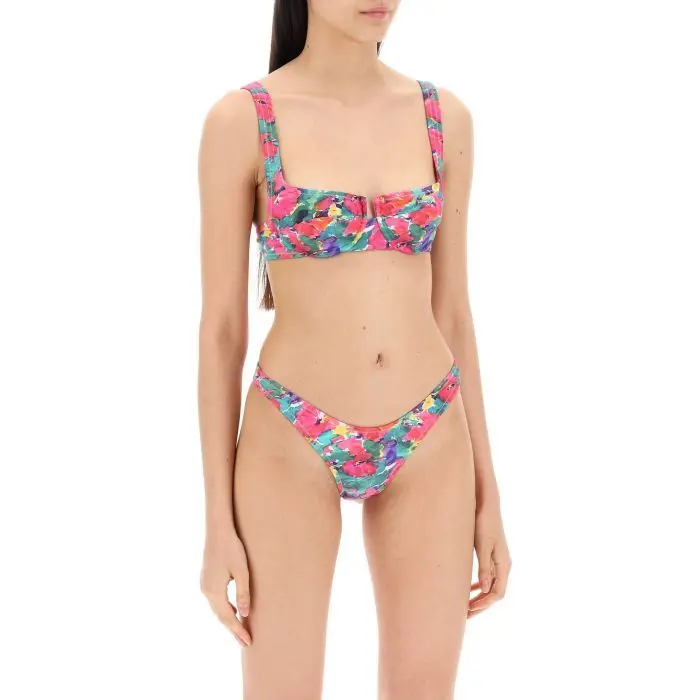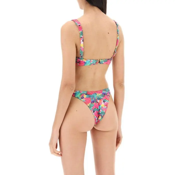 The Brigitte bikini set by Reina Olga is made of printed lycra and consists of a low-rise bottom and an underwired bra with non-padded cups and adjustable straps. The back closure features a four-position adjustable horseshoe hook. The item in the photo corresponds to size 1. MADE IN:Italia COMPOSIZIONE:78%PA 22%EA