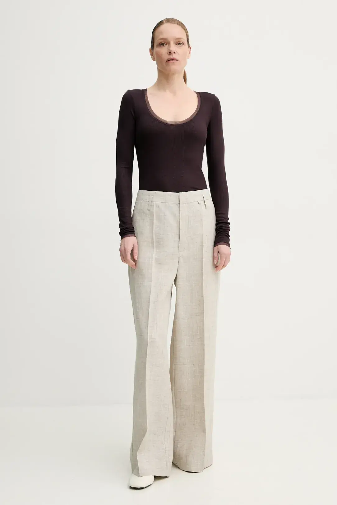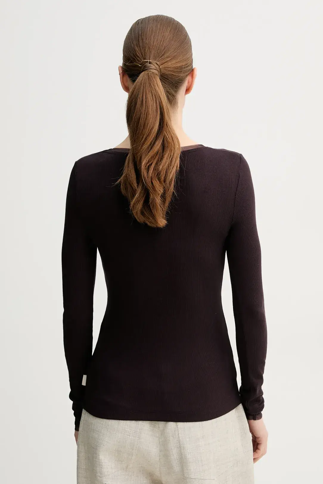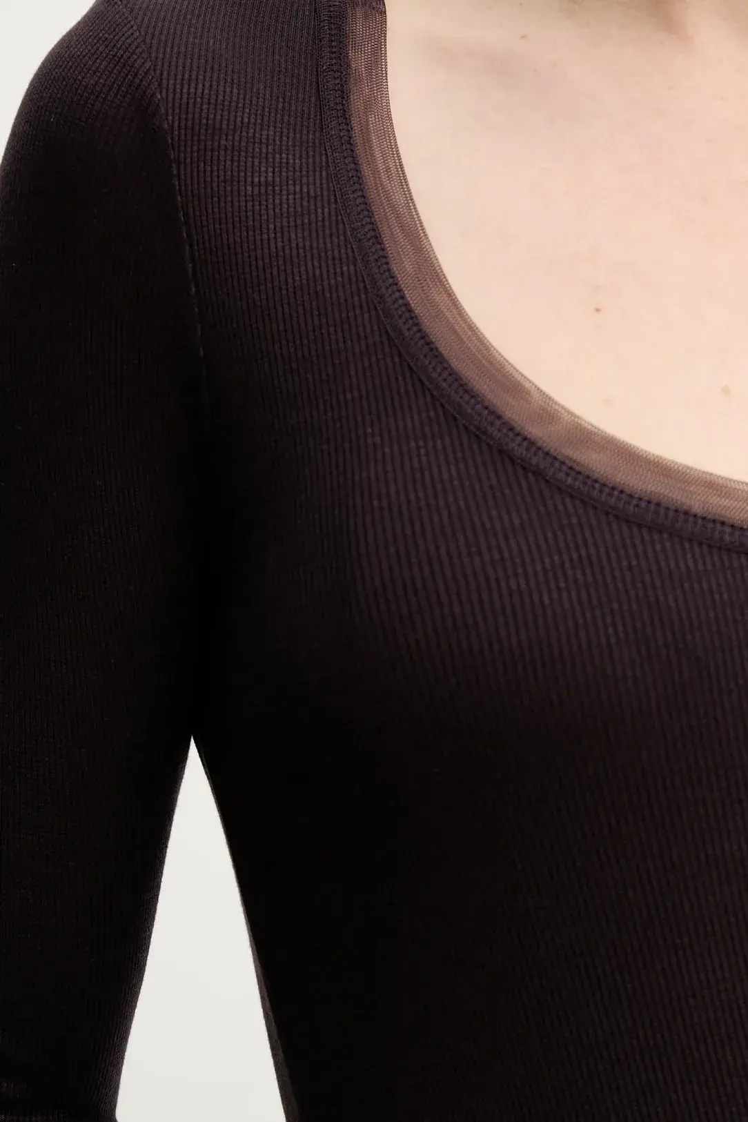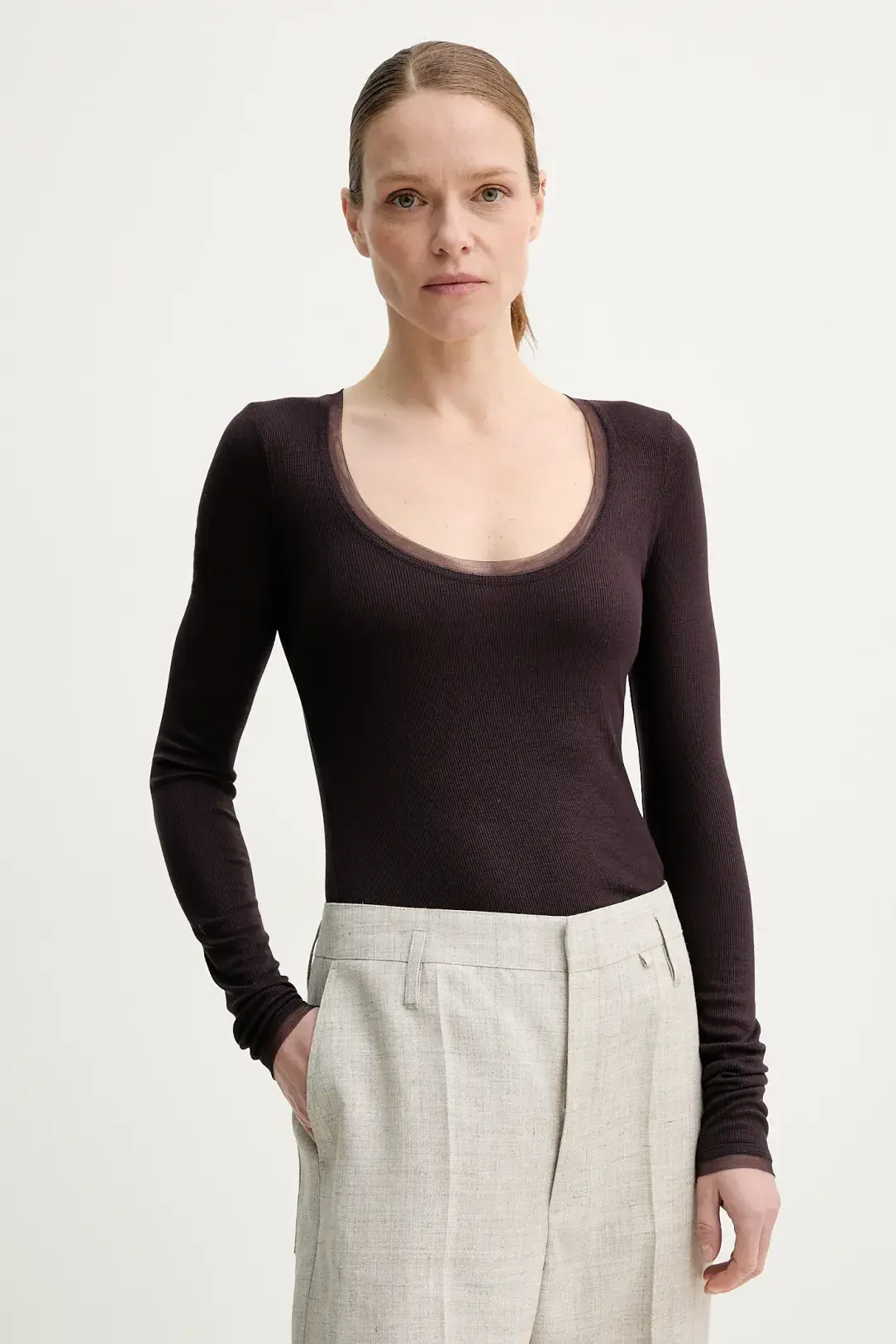 Longsleeve from the Remain collection made of thin, very elastic knit. Model made of airy material with a high viscose content.