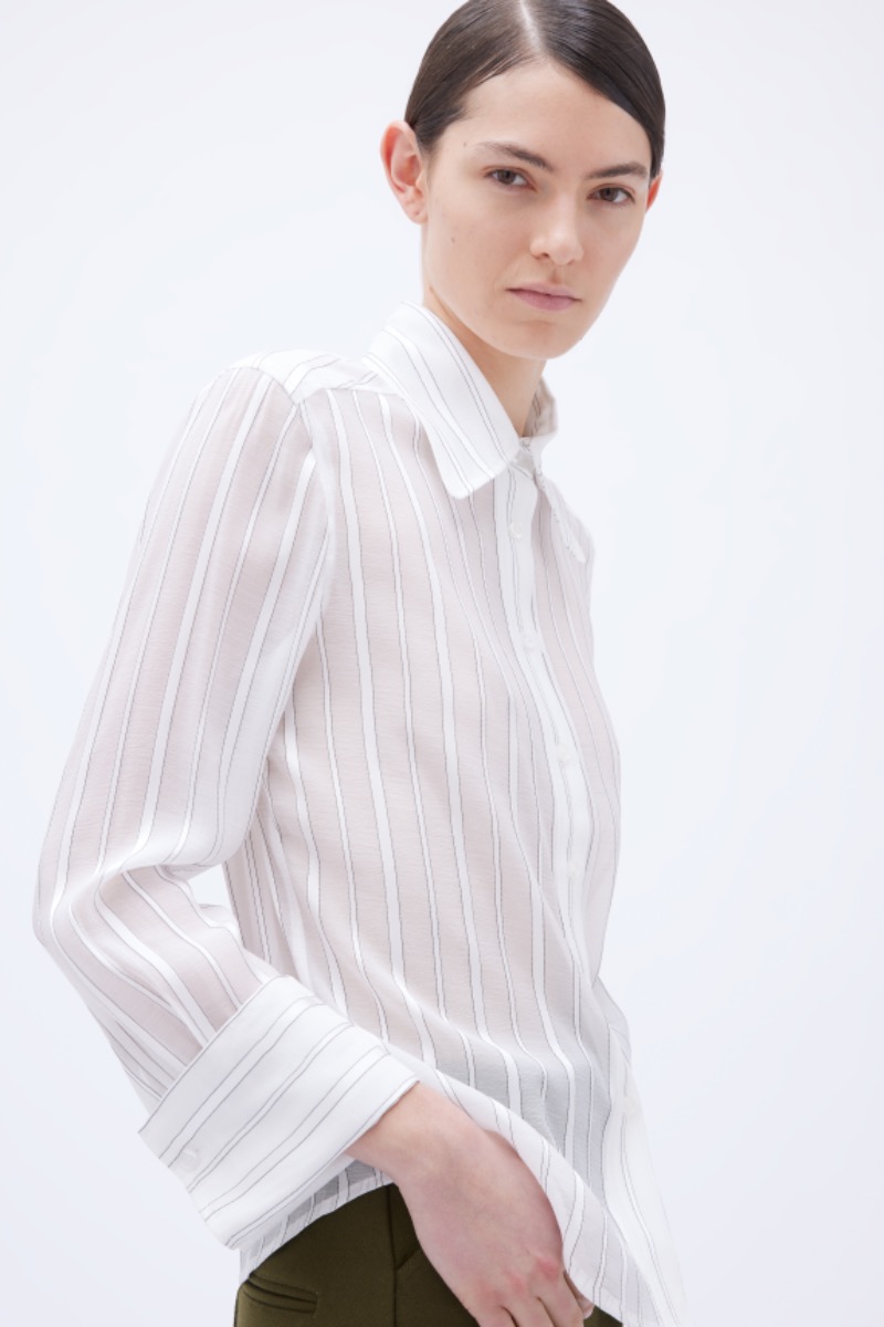 Embrace sophistication in our fitted shirt. Crafted from a light, see-through fabric, it exudes elegance. Featuring French cuffs and a large collar, it's a perfect blend of style and comfort.