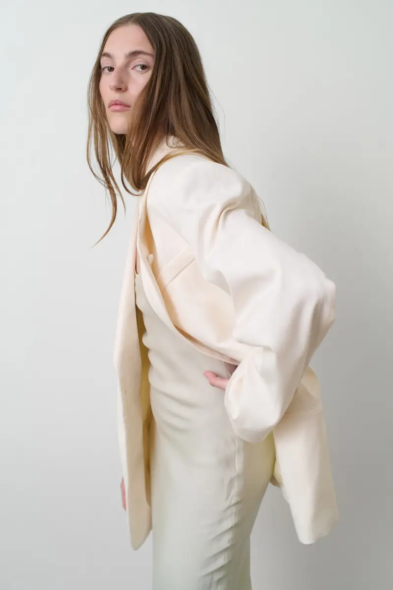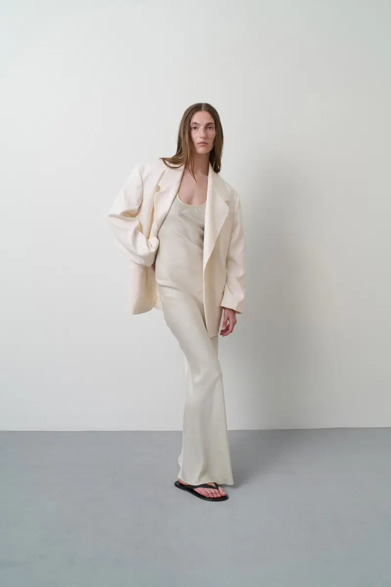 The Oversized Blazer is tailored for structure with sharp shoulders and a straight fit. It includes a front closure and practical pockets for everyday wear.