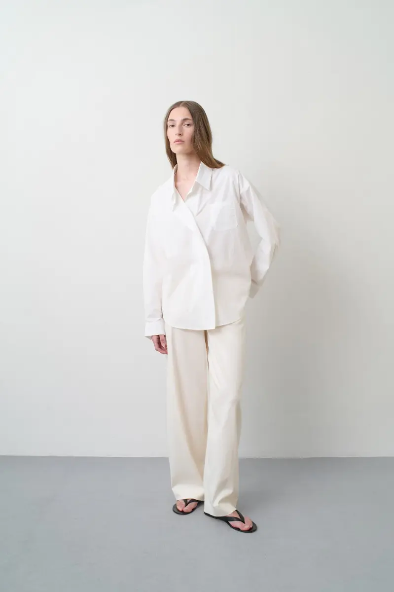The Cocoon Suiting Pants delivers a defined silhouette with a high-rise waist and tailored leg. Finished with pressed creases and side pockets for functionality.