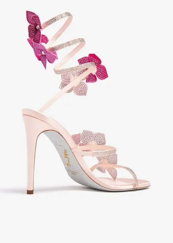 Floraine Crystal Flowers Ankle-Wrap Sandals