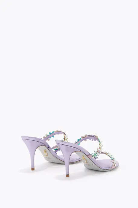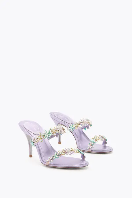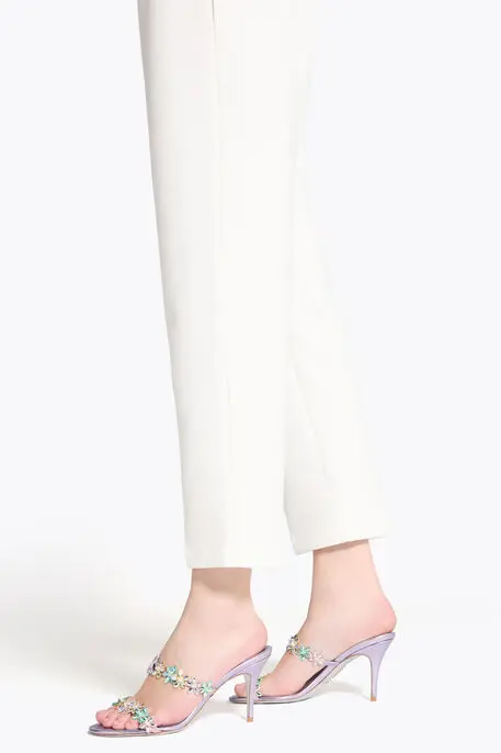 The Eva mule radiates charm and refinement with its iridescent tiny flowers that adorn the straps and the delightful pastel hue. A most-wanted style that elevates any look with undisputed flair.