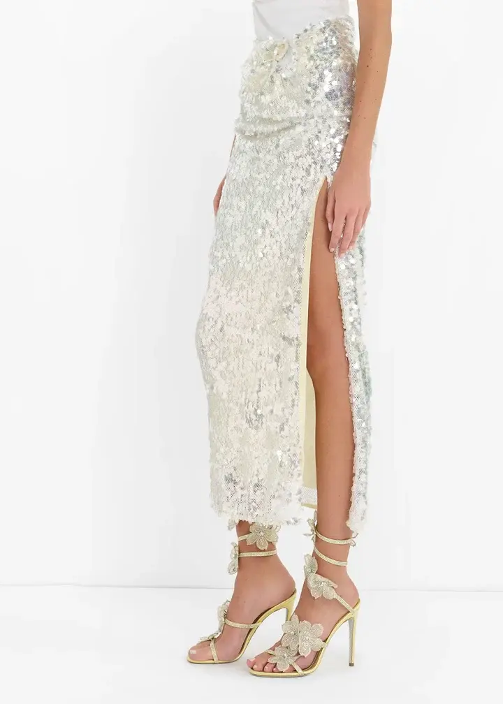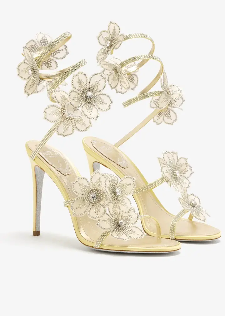 Guaranteed to make a great first impression, these sandals combine delicate lace with crystal-embellished floral appliqués for a standout look. They feature a crystal-embellished serpent-like strap and the brand's signature stardust outsole for added sparkle.