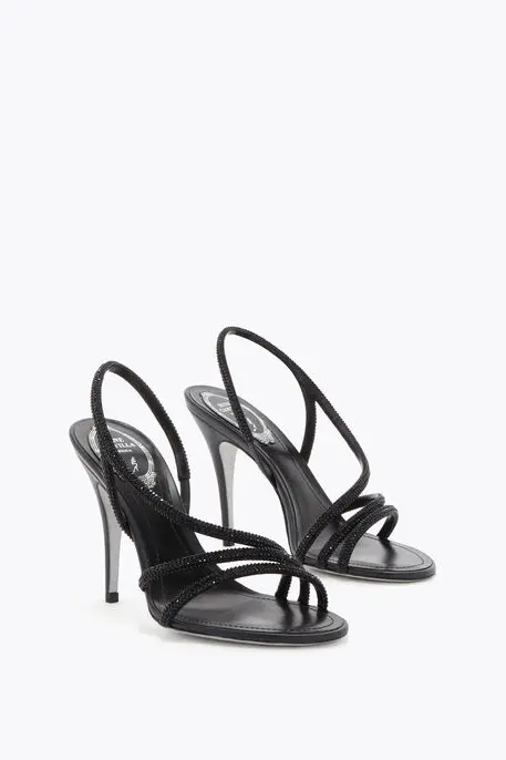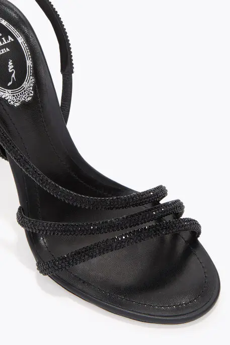 Satin Hand-applied rhinestones Stiletto heel height 4’’ Rounded toe Stardust sole Made in Italy
