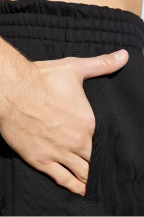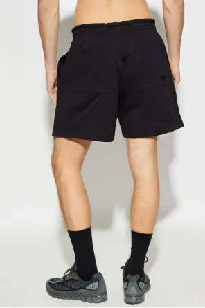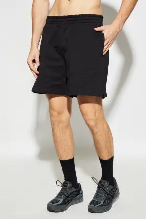 The Initial Sweatshorts in black are crafted from heavyweight (480gsm) cotton. They are an oversized boxy fit & short in length. The shorts have an elasticated waistband with a 1x1 internal rib and natural hue internal drawcords. They are finished with split hems, an embroidered Initial to the back pocket and Represent metal bar to the side seam pocket opening.
