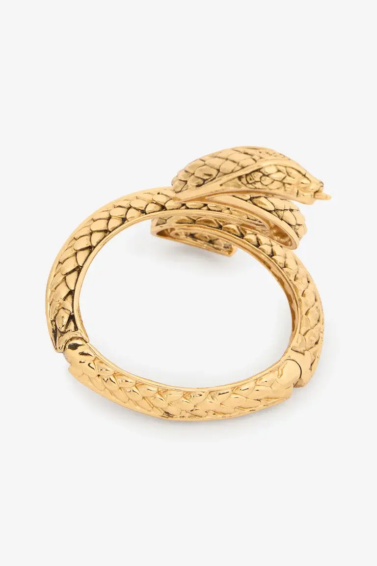 Details Rigid snake-shaped bangle bracelet Antiqued gold-tone finish Engraved detailing Double spring opening Made in Italy