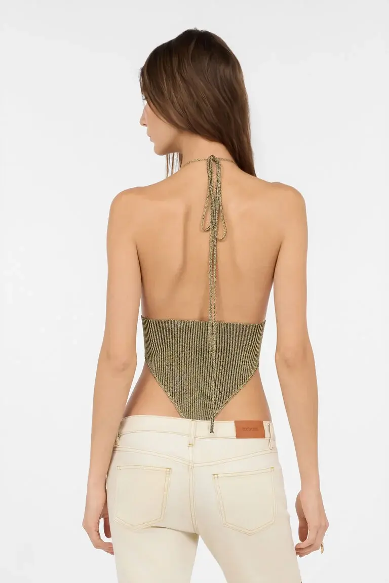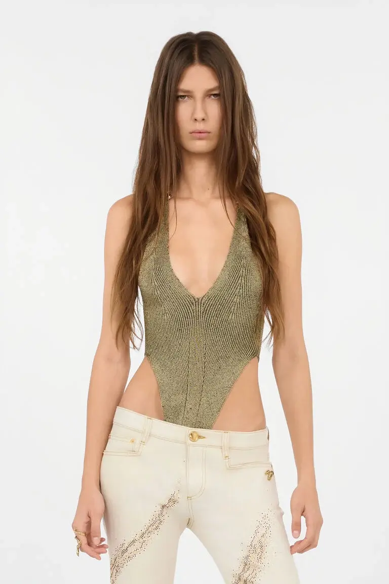 Black and Gold Ribbed Bodysuit with Snakes