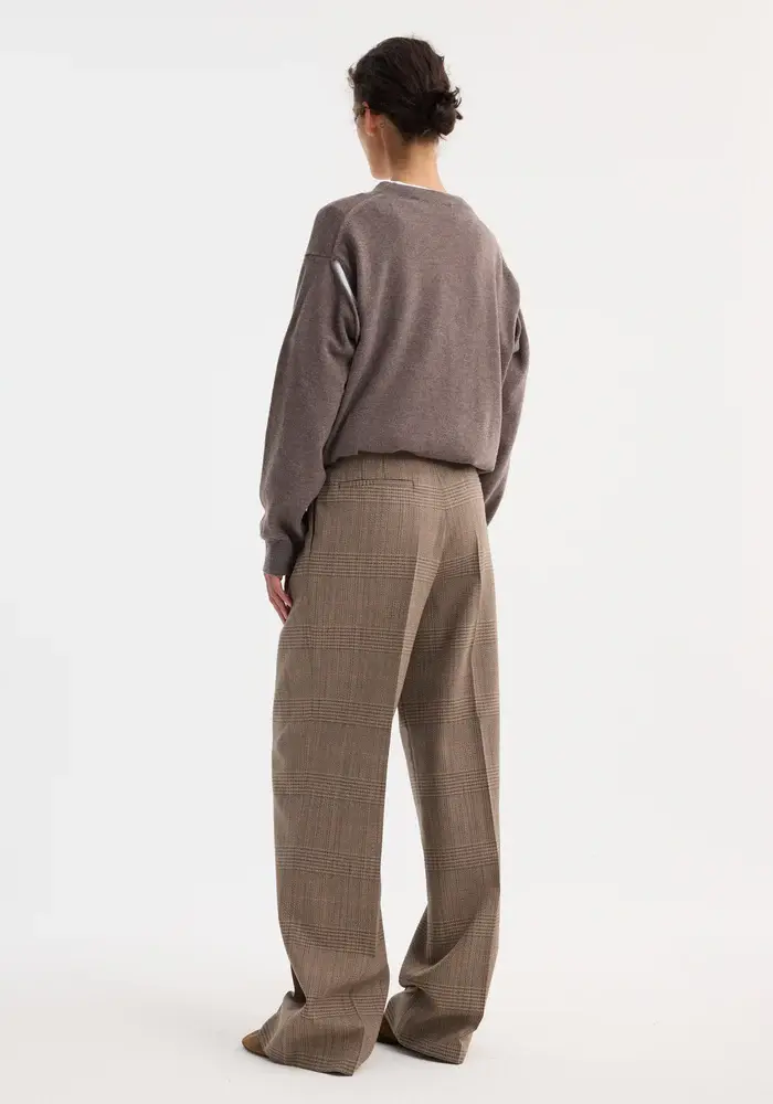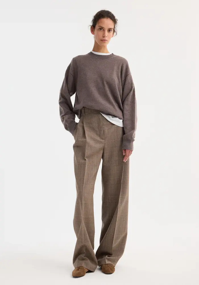 Introducing our classic mid-waist tailored trousers crafted from a beautiful pure virgin wool fabric in Prince of Wales check print. With a tailored waistband, sharp double pleats and a flattering wide leg.