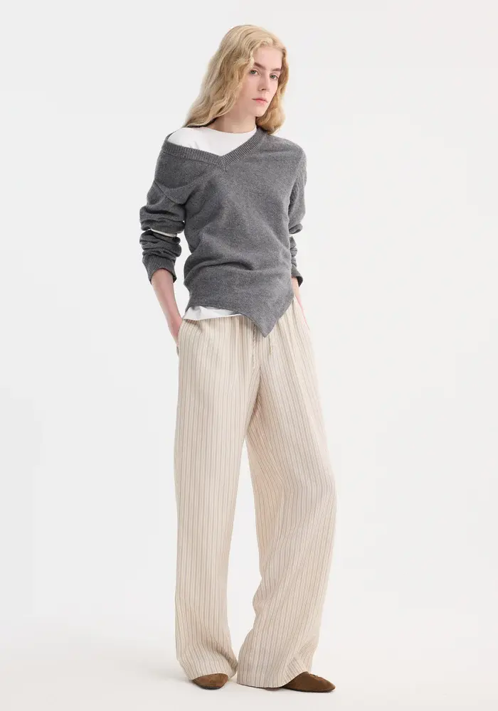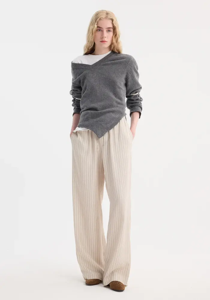 Our staple wide leg trousers with an elastic waistband and drawstring, made in our signature pure silk quality with a twill structure. Now introduced in a timeless elongating stripe print, a classic for every wardrobe.