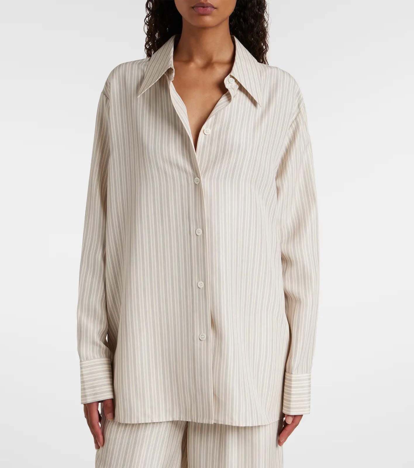 Róhe favors a multifaceted approach to design, infusing every collection with elements of Dutch art and architecture. Cut from featherweight silk, this striped shirt is cut to a longline silhouette for an oversized look.