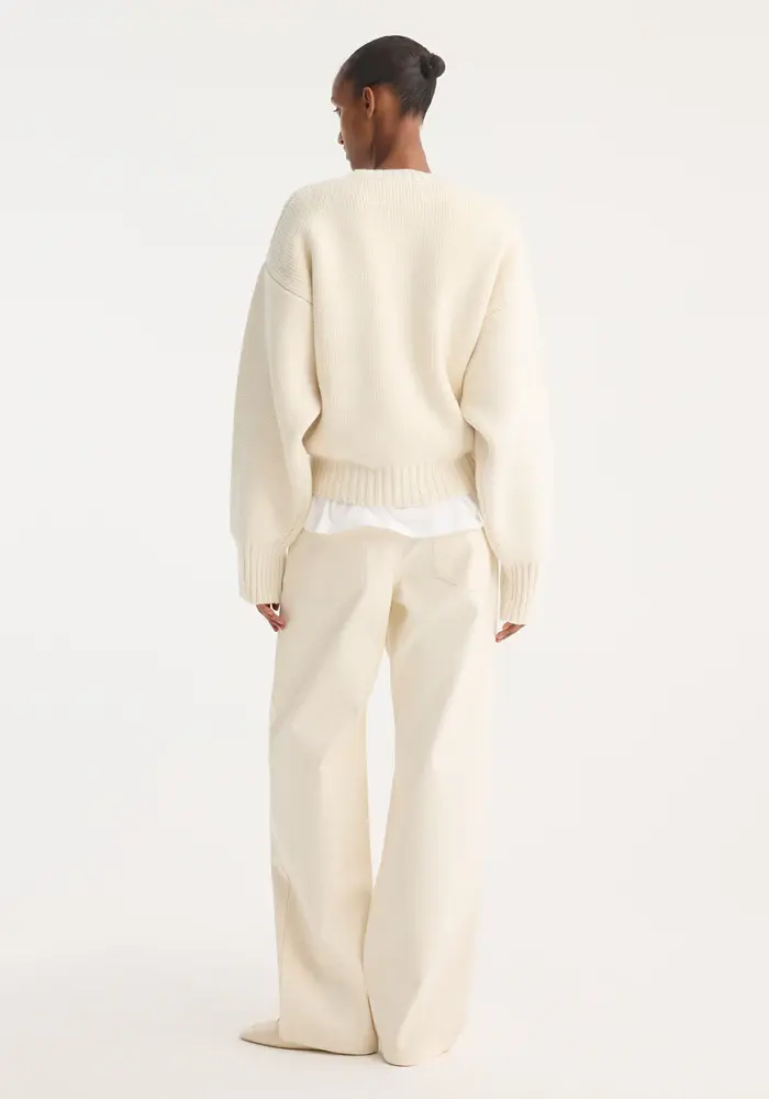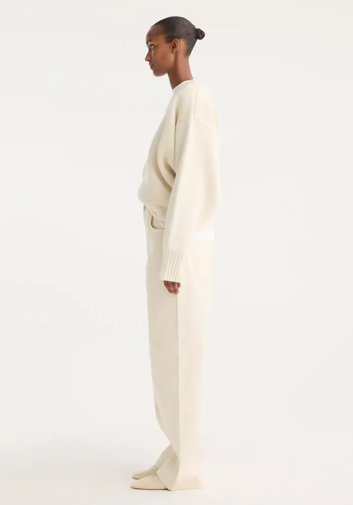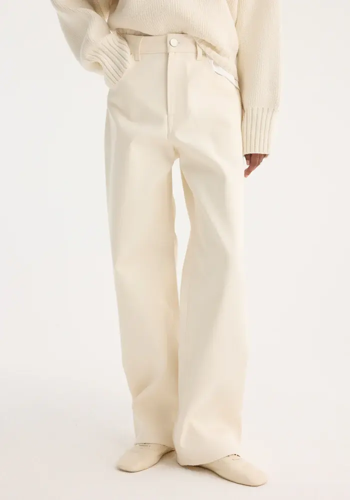 Our classic baggy trousers crafted from an Italian double weave compact cotton with a water repellent finish. Featuring a low-waist fit, elongating wide leg and a branded metal button.