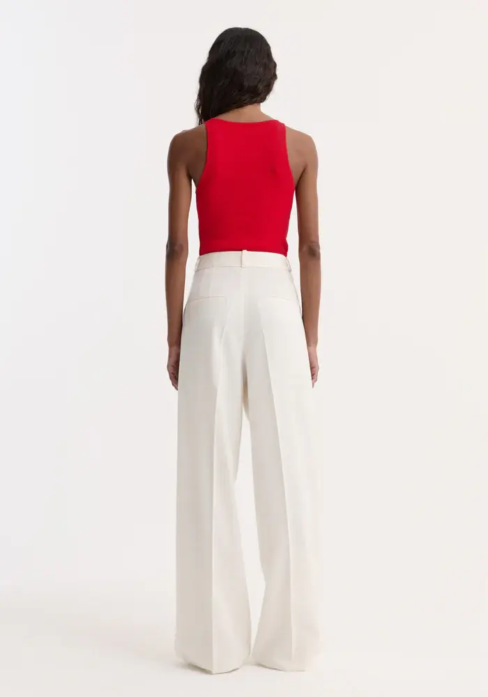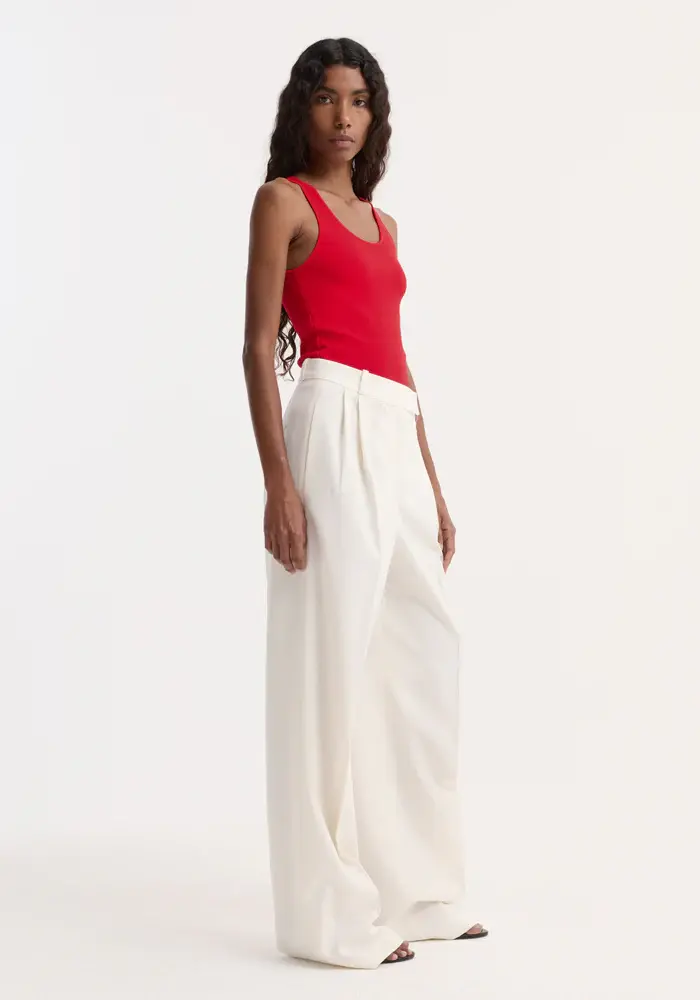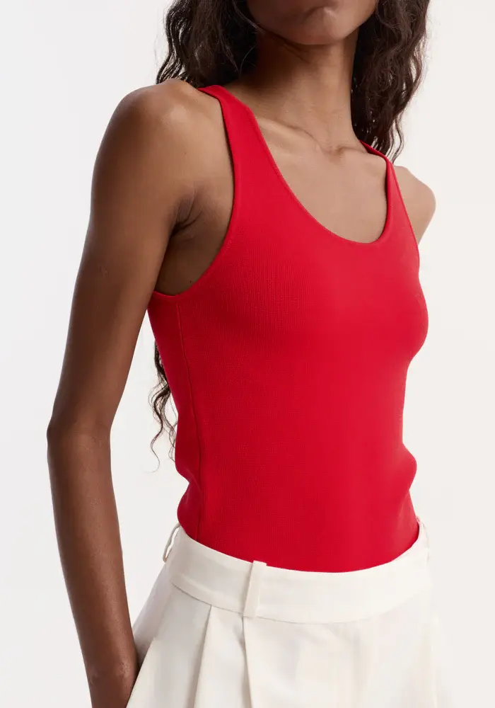 A staple knitted top with a scoop neckline, crafted from a high-quality dense viscose blended yarn in seasonal red. Perfect for your everyday wear and effortless layering.