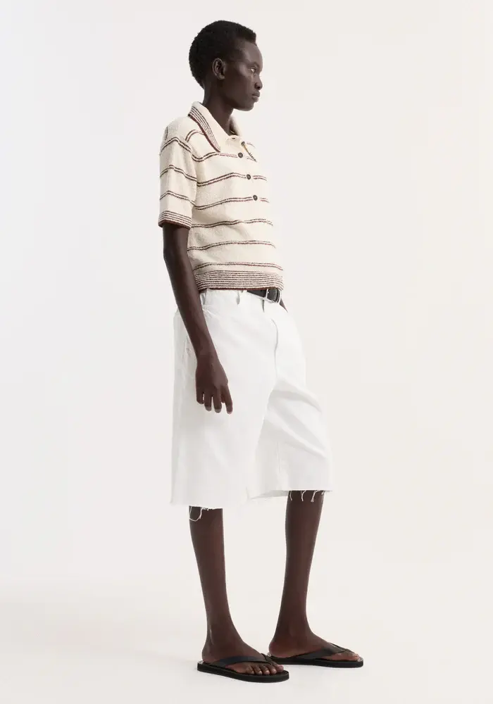 A classic polo reimagined in striped towelling fabric. Cut to a cropped fit, it features a traditional polo collar and a four-button placket for a relaxed, sporty feel.