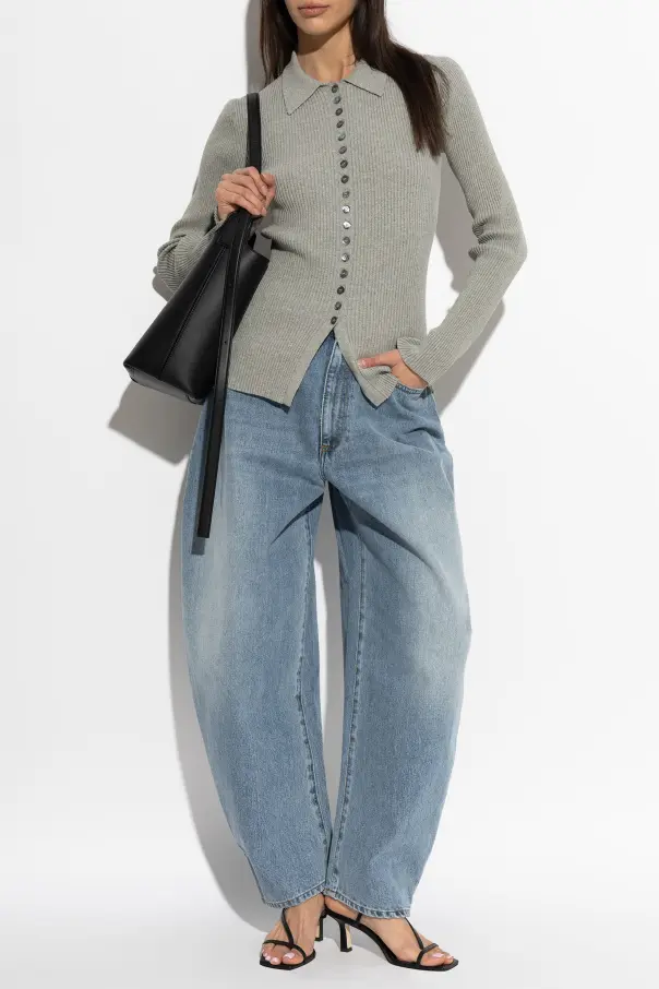 Fitted cardigan is a sophisticated choice for lovers of timeless elegance. This model impresses with its classic shape: the fitted cut accentuates the figure, beautifully sculpting the waist. The subtle grey shade, uniform and smooth, epitomizes refined minimalism.