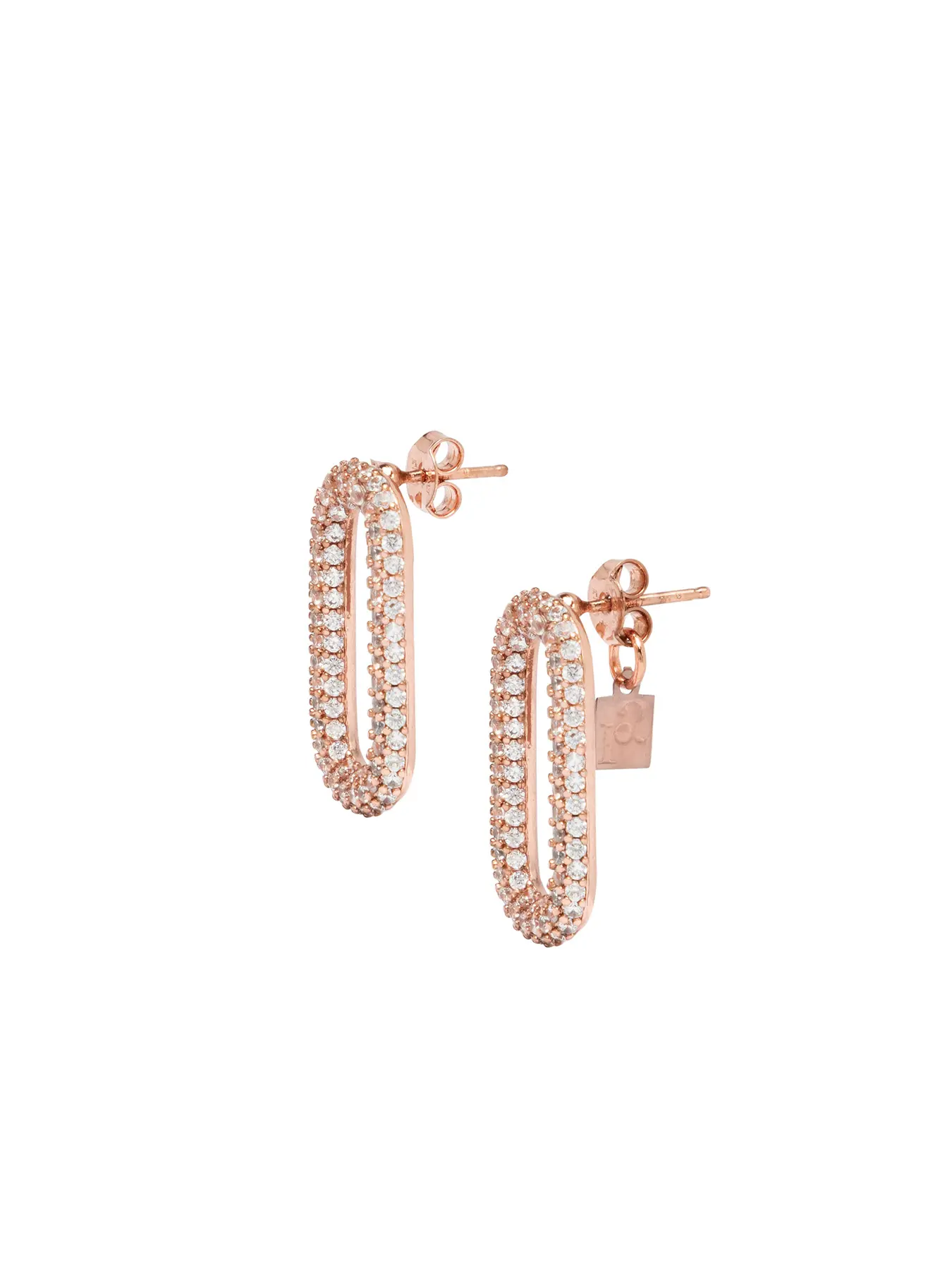 "Royal" earrings are distinguished by their refined simplicity, making them versatile and ideal for all occasions. A brass base with a sophisticated pink gold color enriched by small clear crystals.