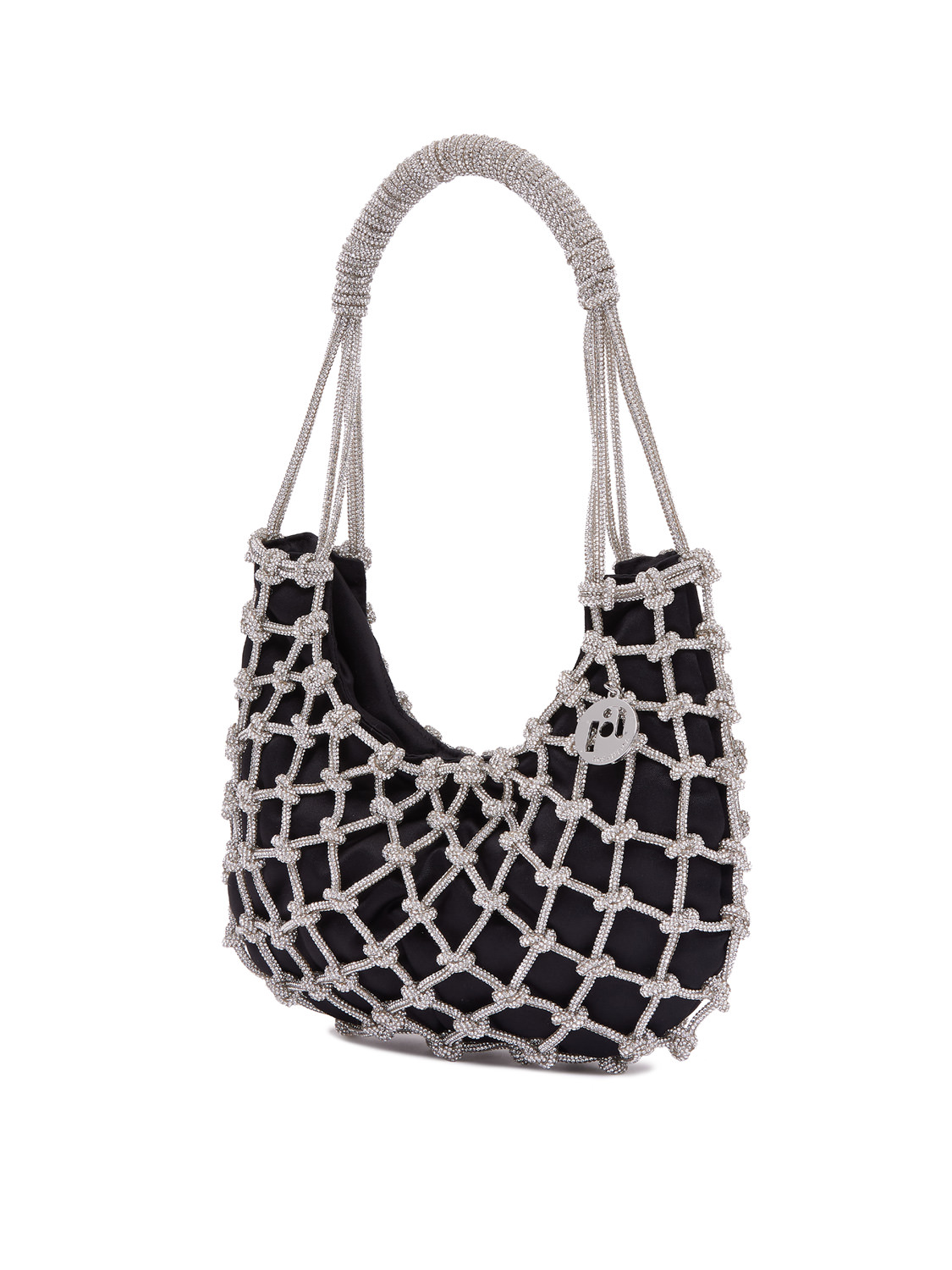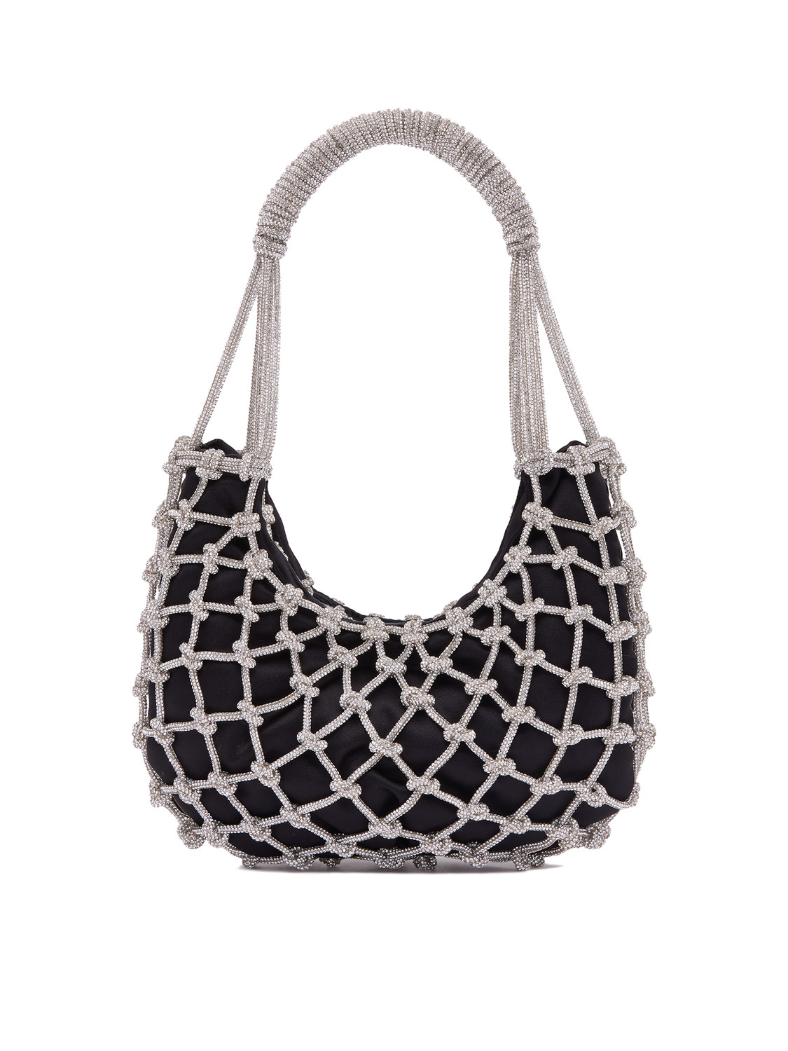 New icon of the season, "Nodi" bag is handmade by expert artisans with a special knowing technique, made of a tiny crystals wire. Lined with black satin fabric, the bag has a magentic closure.