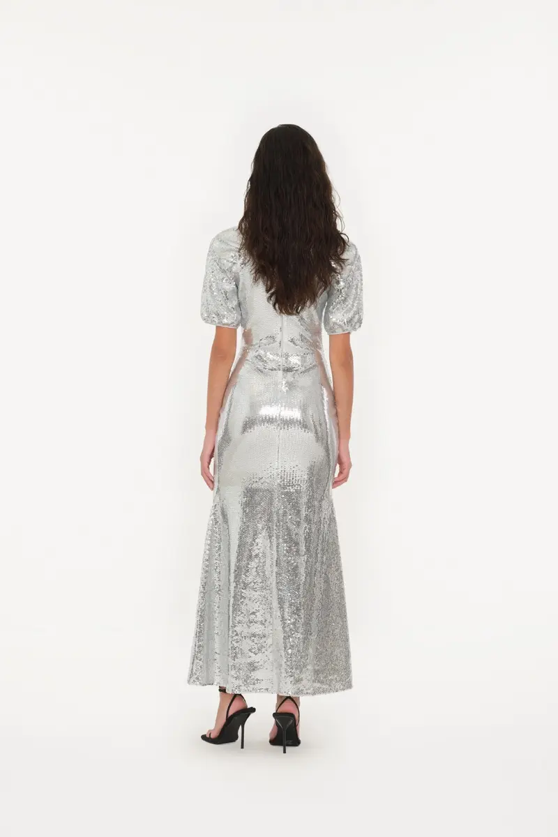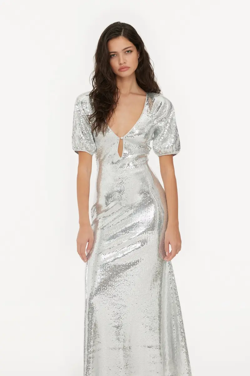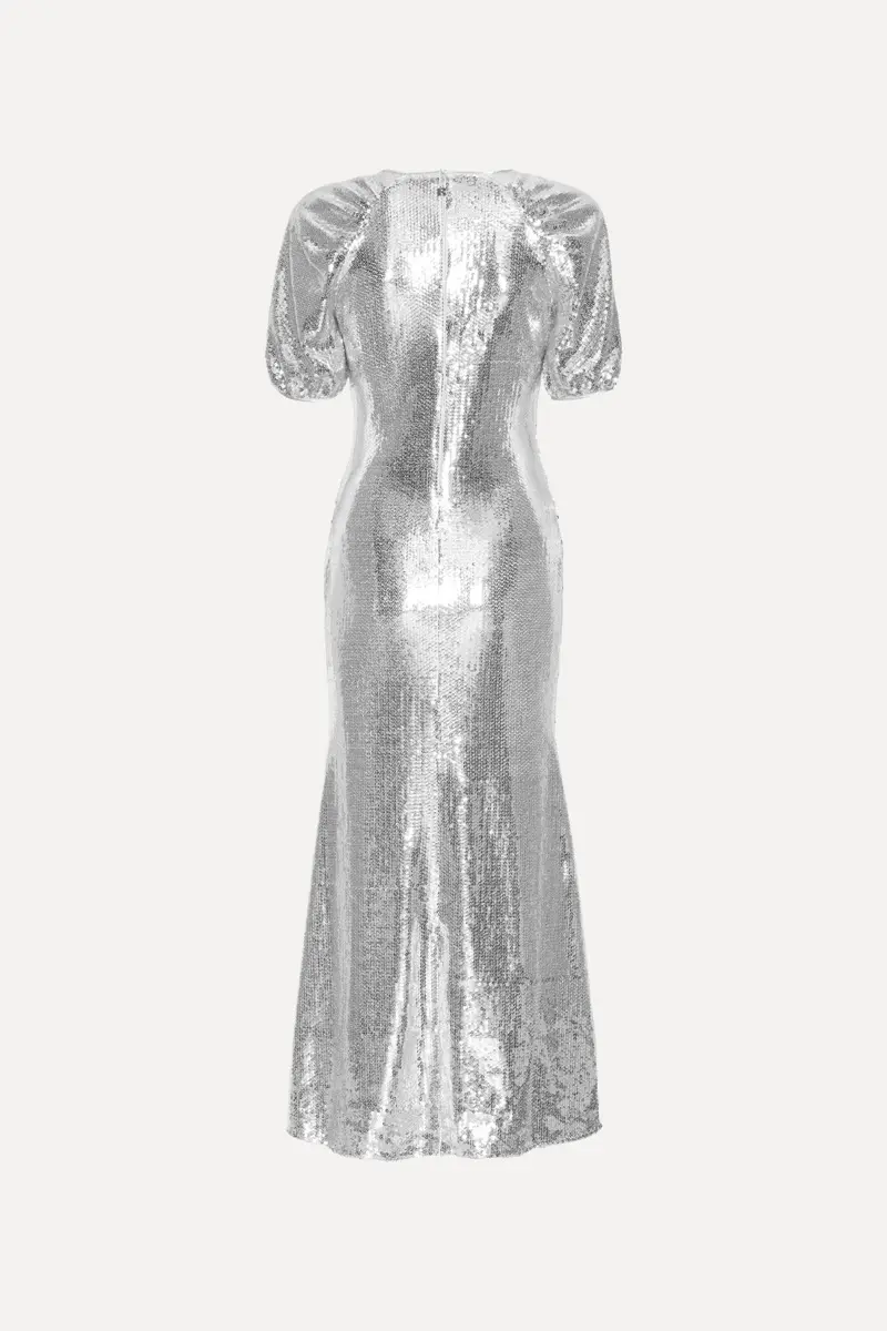 ntroducing our stunning Midi Puff Sleeve Dress, where classic sophistication meets modern allure. With its graceful midi length and chic puff sleeves, this dress offers a perfect balance of elegance and trendiness. The flattering V-neckline and keyhole detail at the front add a touch of allure, while the fitted waist ensures a flattering silhouette. Completed with a wide skirt for added flair, this dress is to turn heads at any event with its timeless charm and contemporary style.
