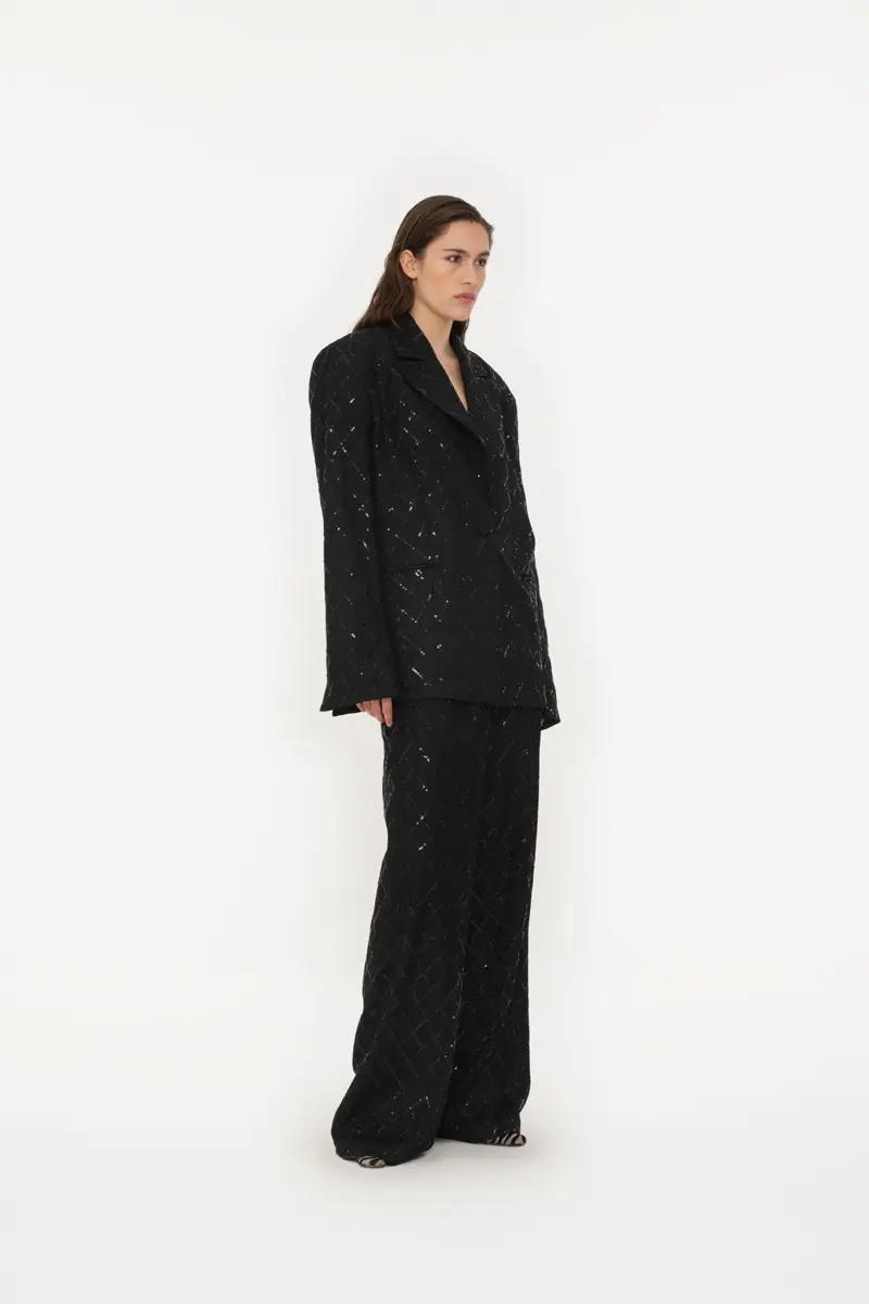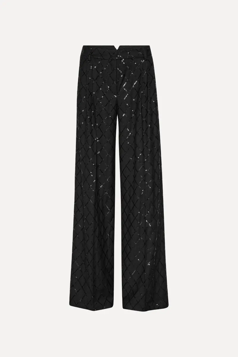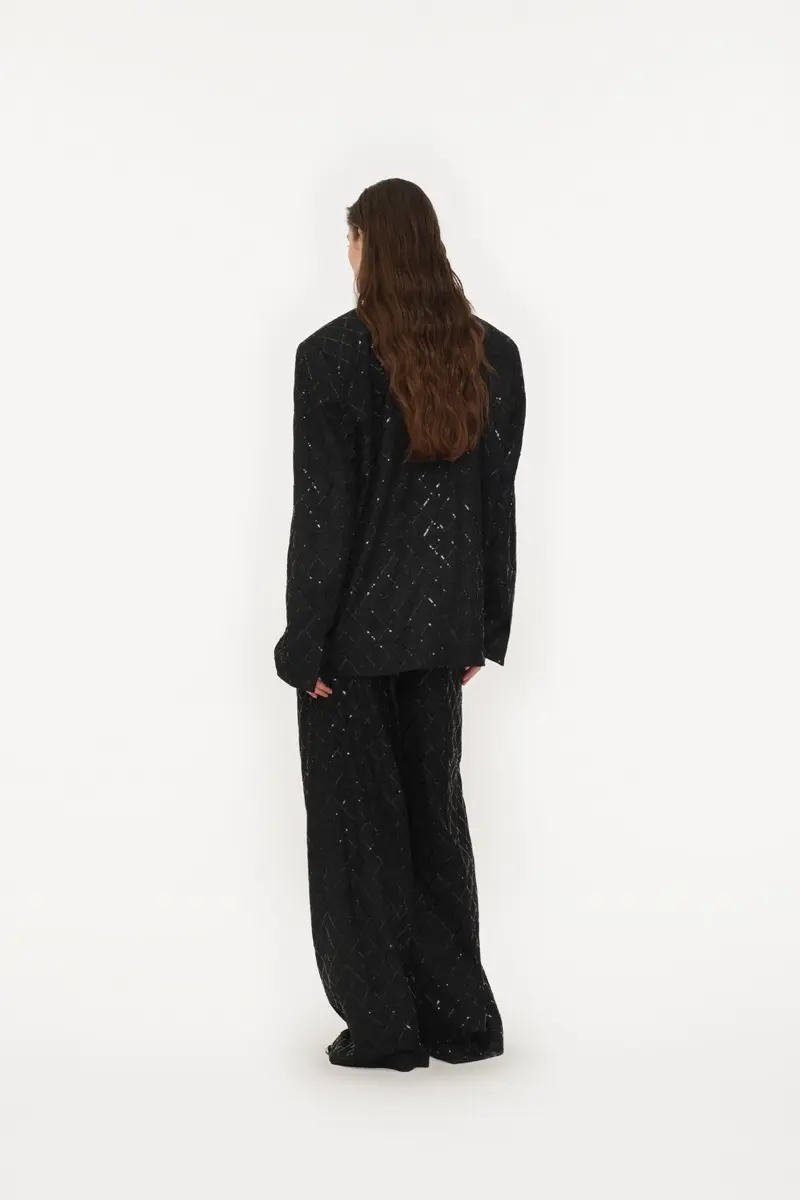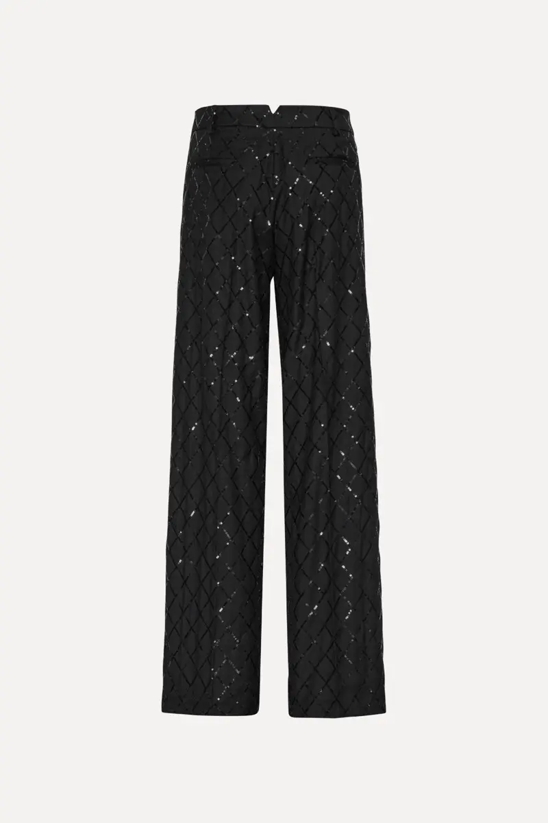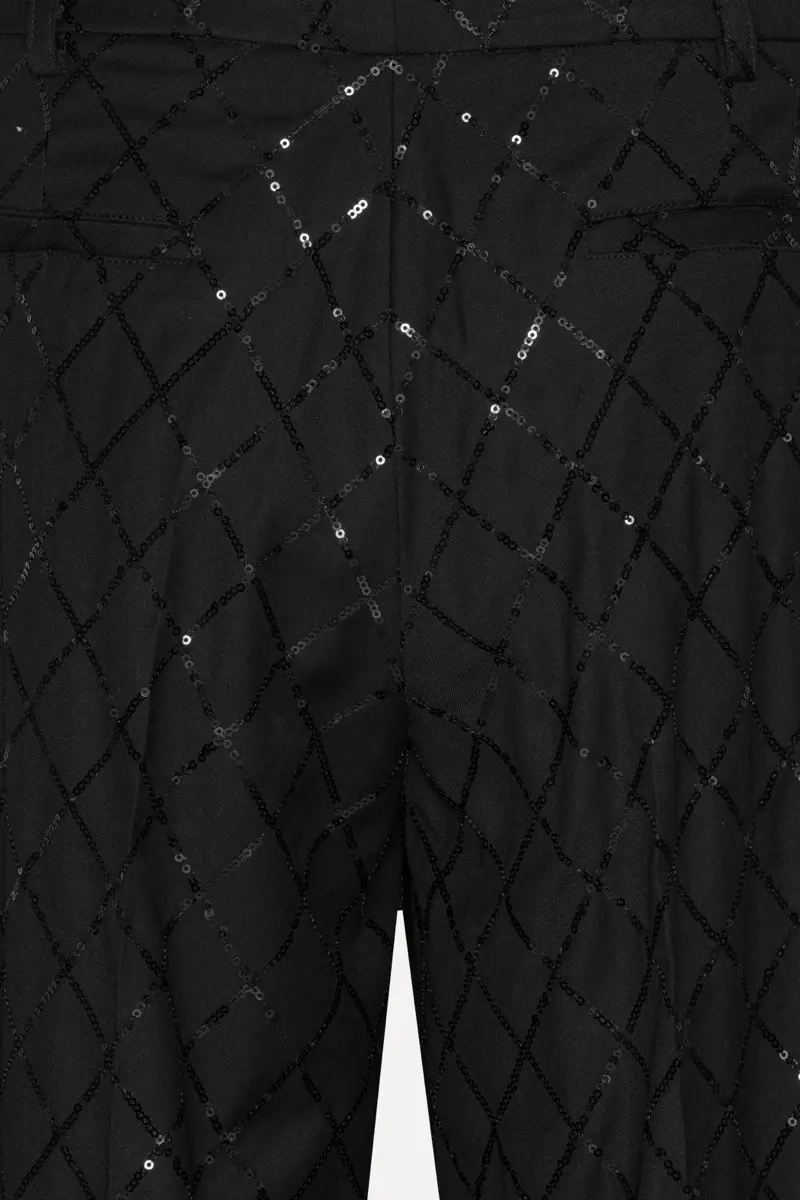 Introducing our stylish mid-waisted trousers, designed for both comfort and flair. With a loose fit and eye-catching sequin pattern, they're perfect for any occasion. Complete with pockets and a secure closure, these trousers are both fashionable and functional.
