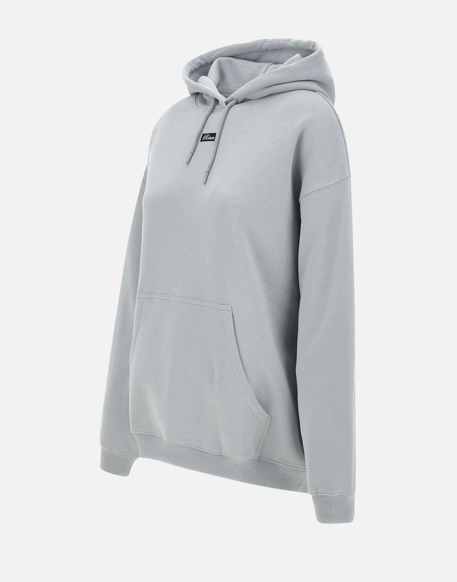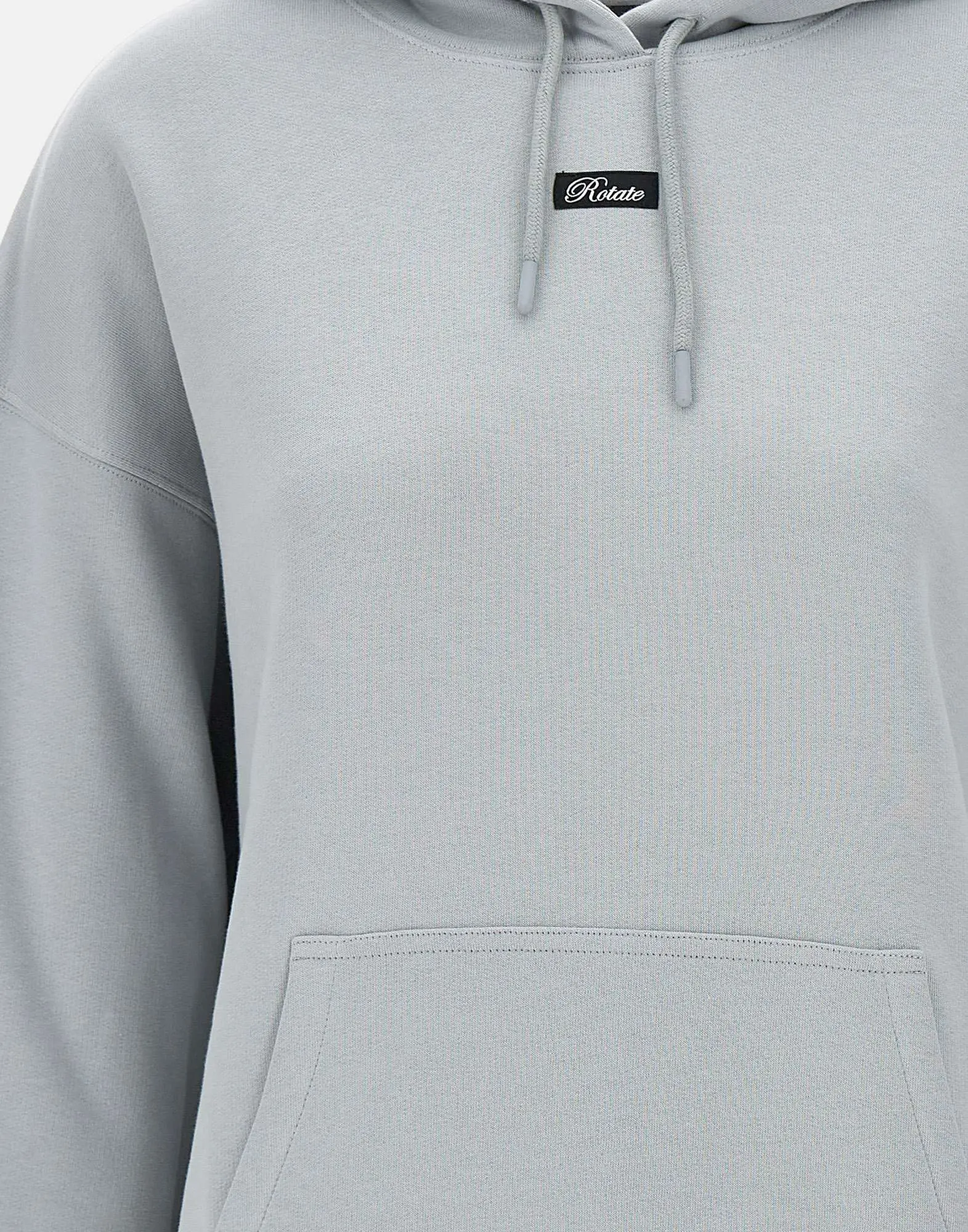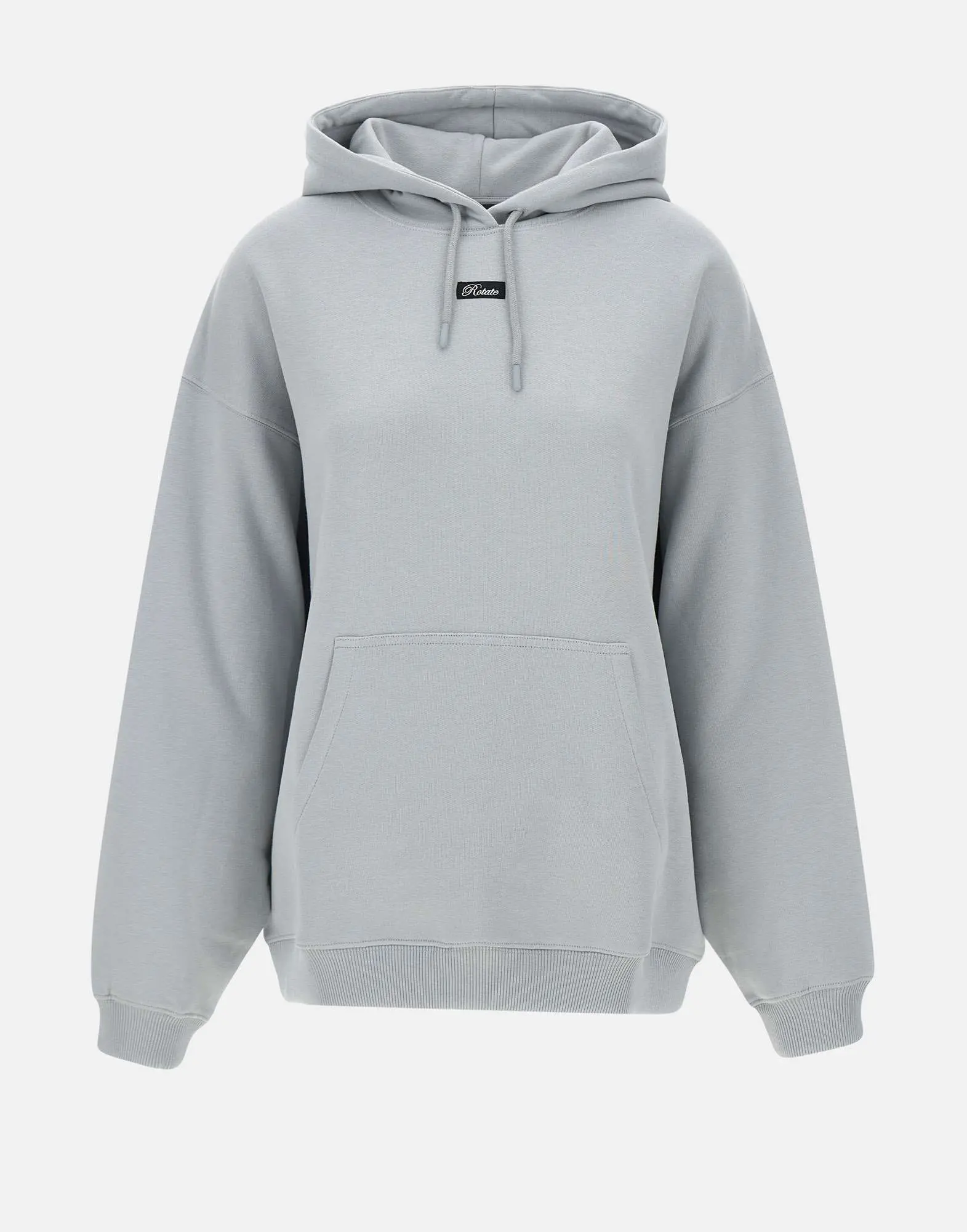 Rotate birger Christensen "Heavy" women's cotton sweatshirt, very light blue paper, long sleeves, hood with matching drawstring, kangaroo pocket, front logo label, ribbed edges, fleece interior, relaxed fit