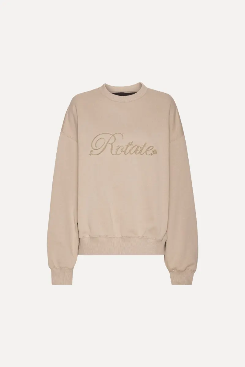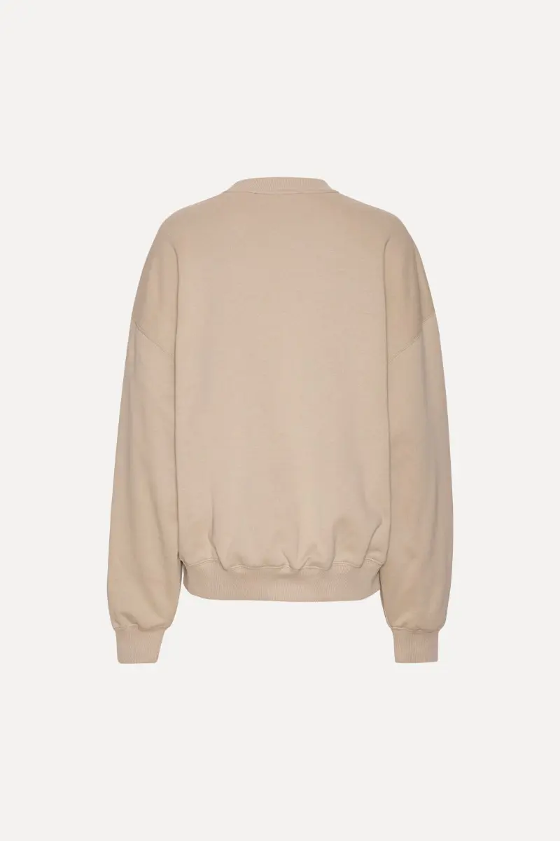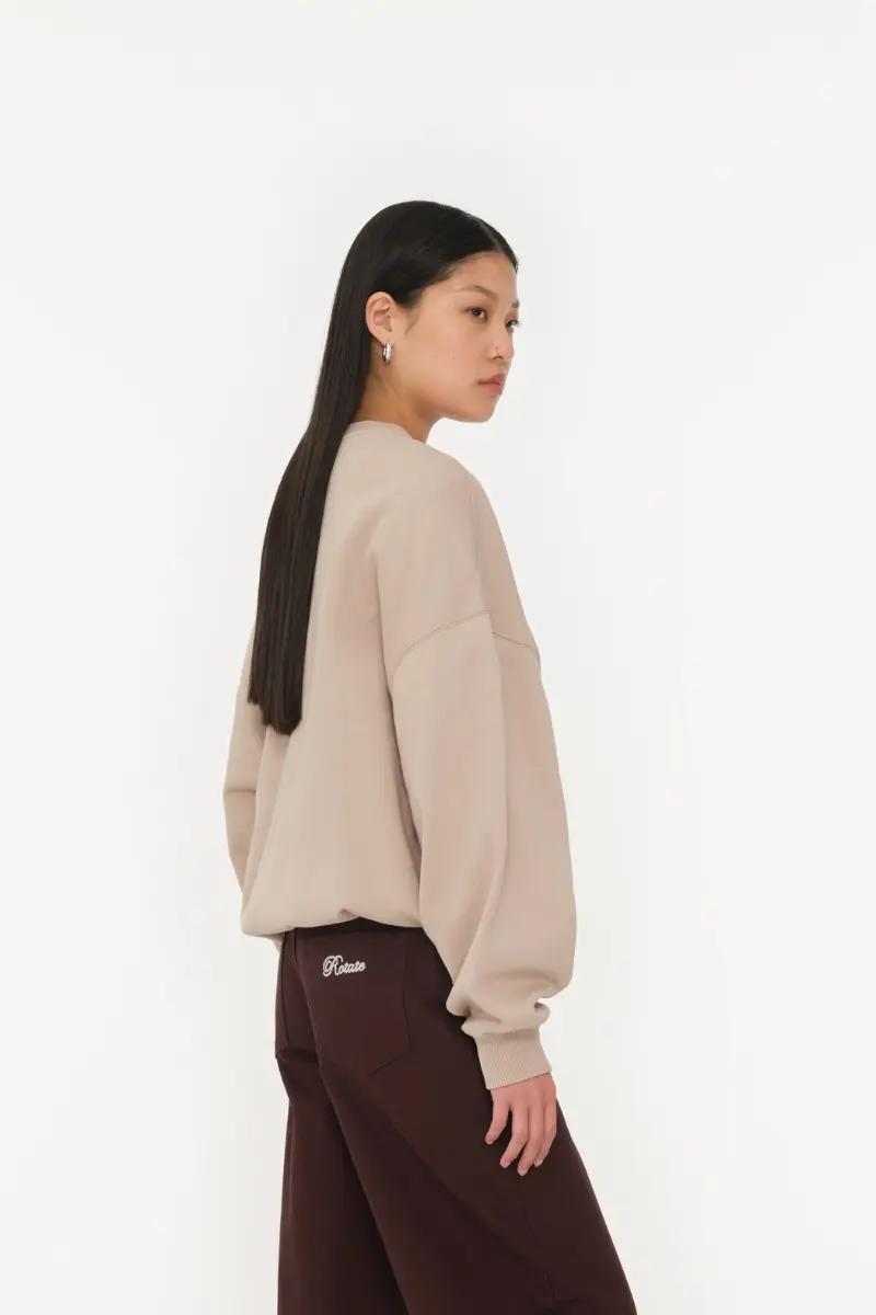 Heavy Sweat Crewneck Beige featuring a slightly fitted silhouette with embroidery logo artwork at the front. The style is completed with an elasticated hem and a crew neckline.